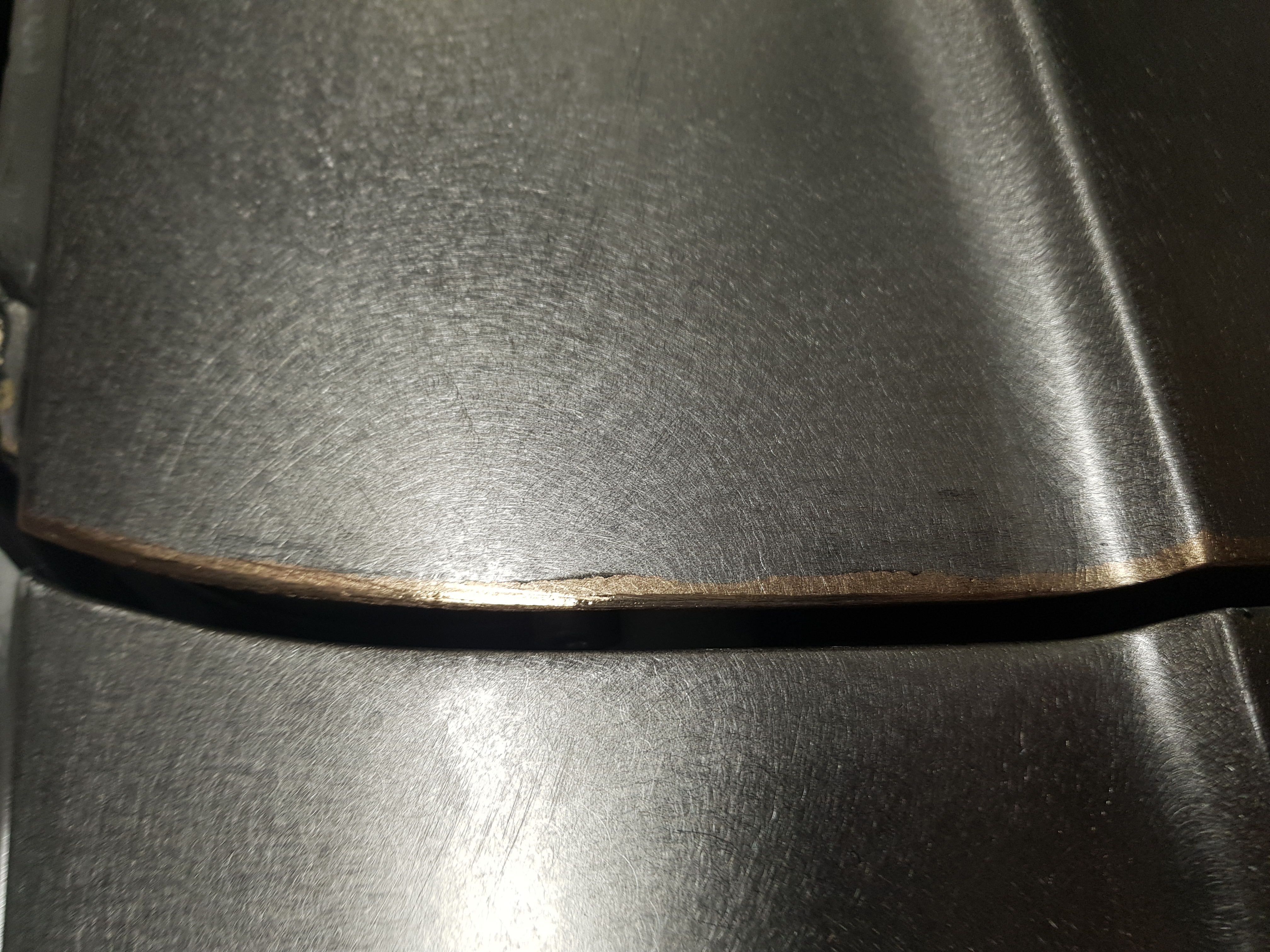 picture of the hinge line of the nearside door; as you can see there is a run of braze (or maybe it's TIG) down the leading edge. As we know, Naples didn’t produce the most accurate pressings in the world so this has been added to enable the shut line to be contoured to give a constant gap with the wing. Same process on the back edge of the door. On the offside, they had to shave some metal off.