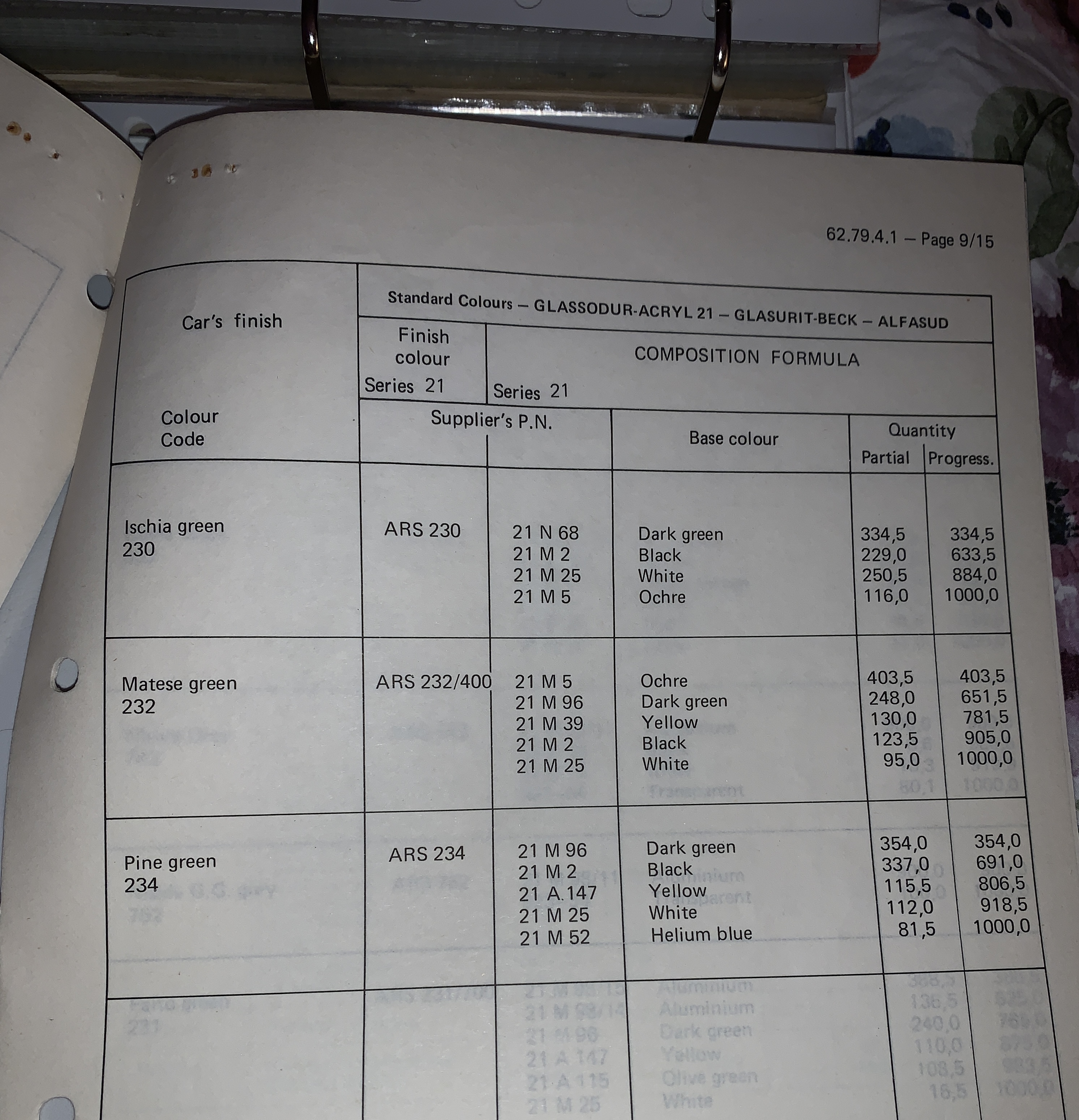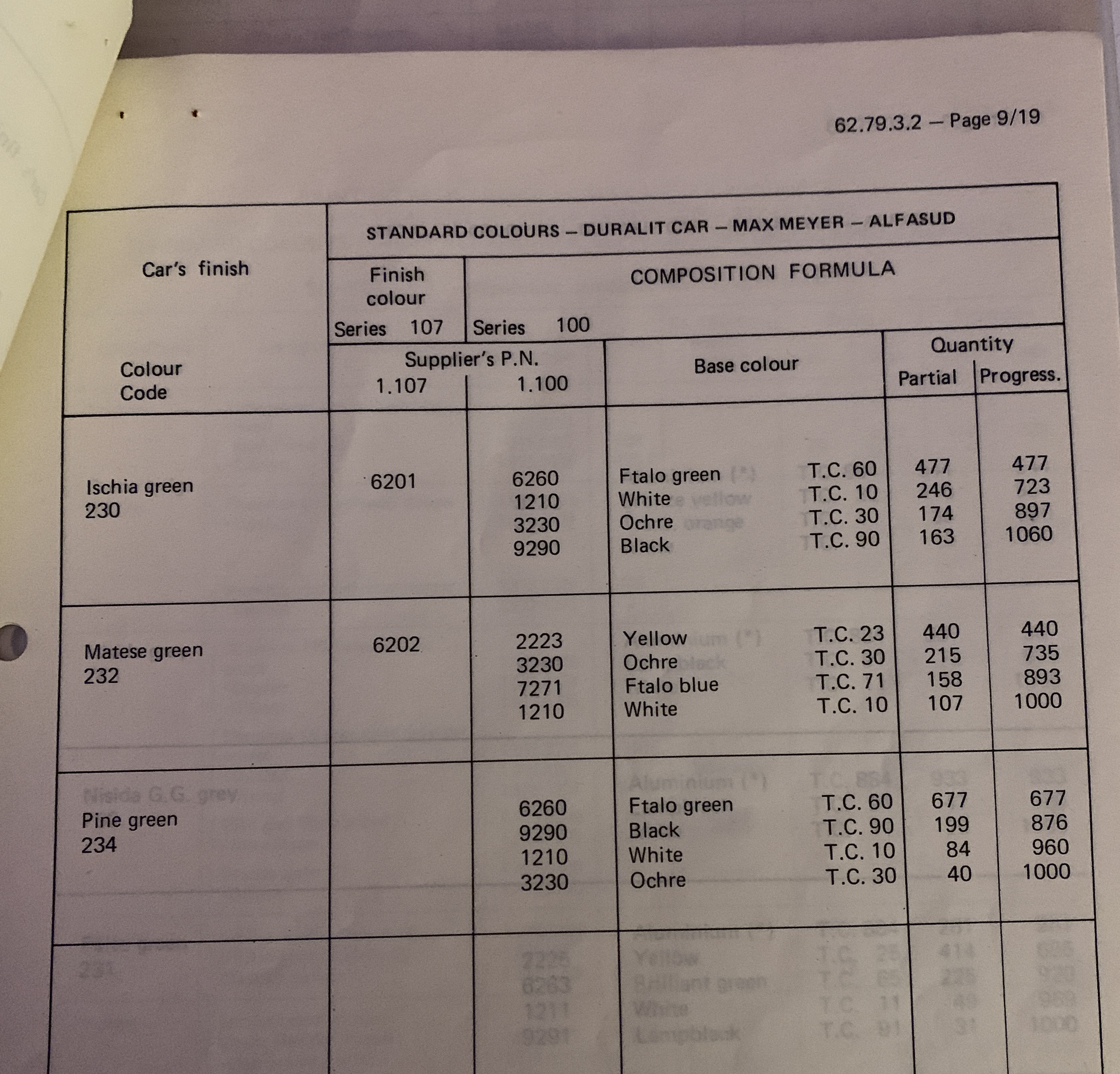 I think Verde Matese was only offered in the UK on the first run of 1.3 Sprints with the chrome insert in the screen seals. My fathers '77 car was this colour.......I was driving a Fiat 127 at the time, the Sprint was a revelation in handling and an engine that wanted to rev for ever. Unfortunately it was far too "sporty" for my mother's taste (she didn't drive) and poor old Dad ended up trading it for an Ivory Sud Saloon Gold Cloverleaf that failed its first MOT on rot. The Sprint sowed the seed though and in 1979 I became the proud owner of a brand new Ti 1350, APL479T. Last seen racing at Lydden Hill many years ago, I'm sure it died a long time ago.