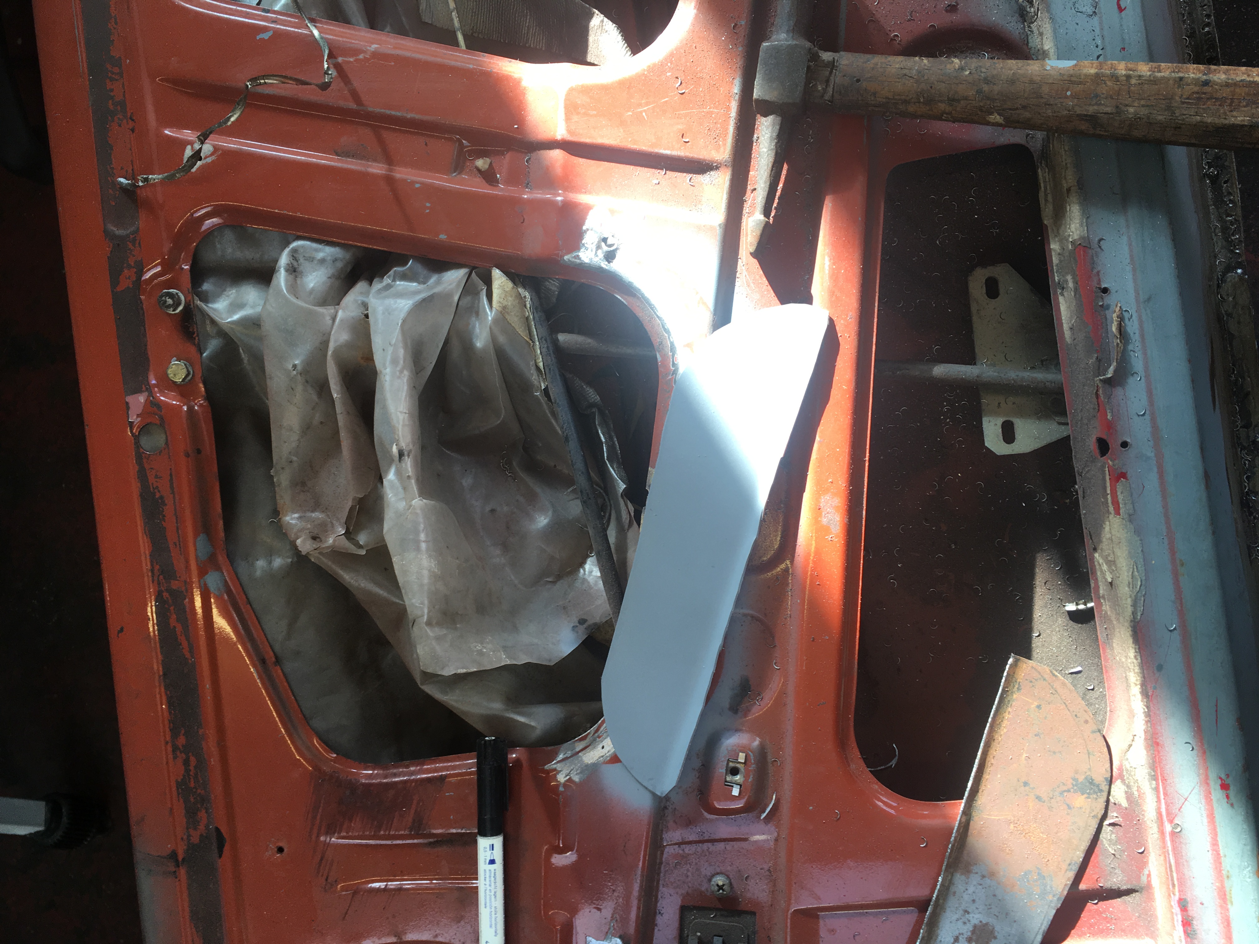 Been a while thought I should get back on it so last bit of welding that I keep forgetting is to make series 2 doors fit door panels of a series 3 so I needed to weld up some holes add a piece for arm rest to bolt on to then I’ll add rivnuts for bolts I’ve got door cards to line up to drill holes for clips and arm rest.