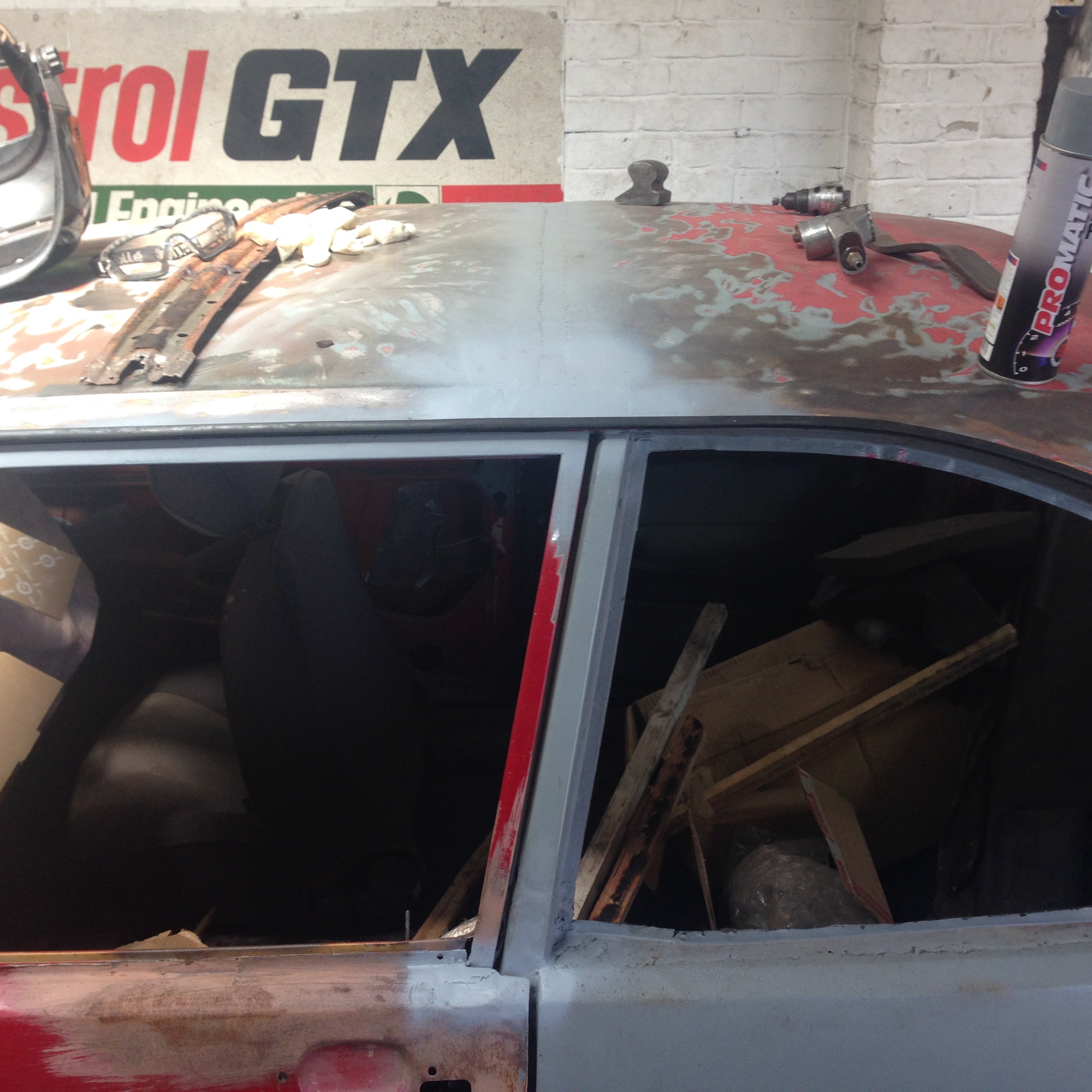 Not much been going on with Sud as been side tracked with jcb ,work,mountain biking, nearly chopping my ear off and life in general but have got roof brace welded in and inside primed and sprayed with red raptur for sound proofing and support when rubbing down filler . Not much more I can do in the workshop it's in as need to get it in body shop for filler work as don't won't filler dust everywhere