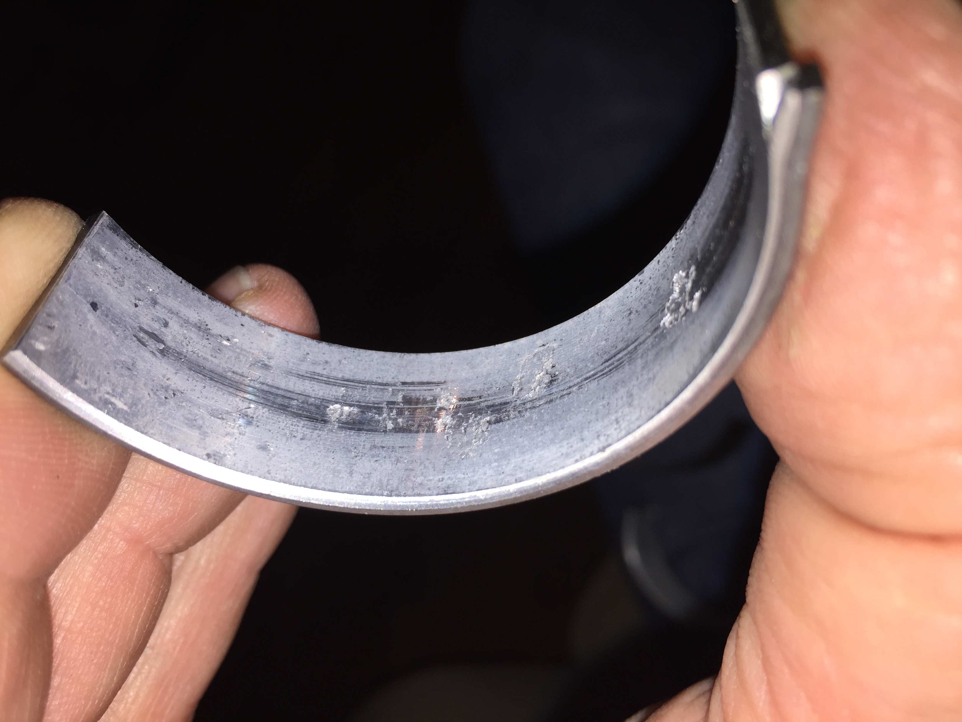 Fatigue cracks in the white metal leading to a bit of material liberation.