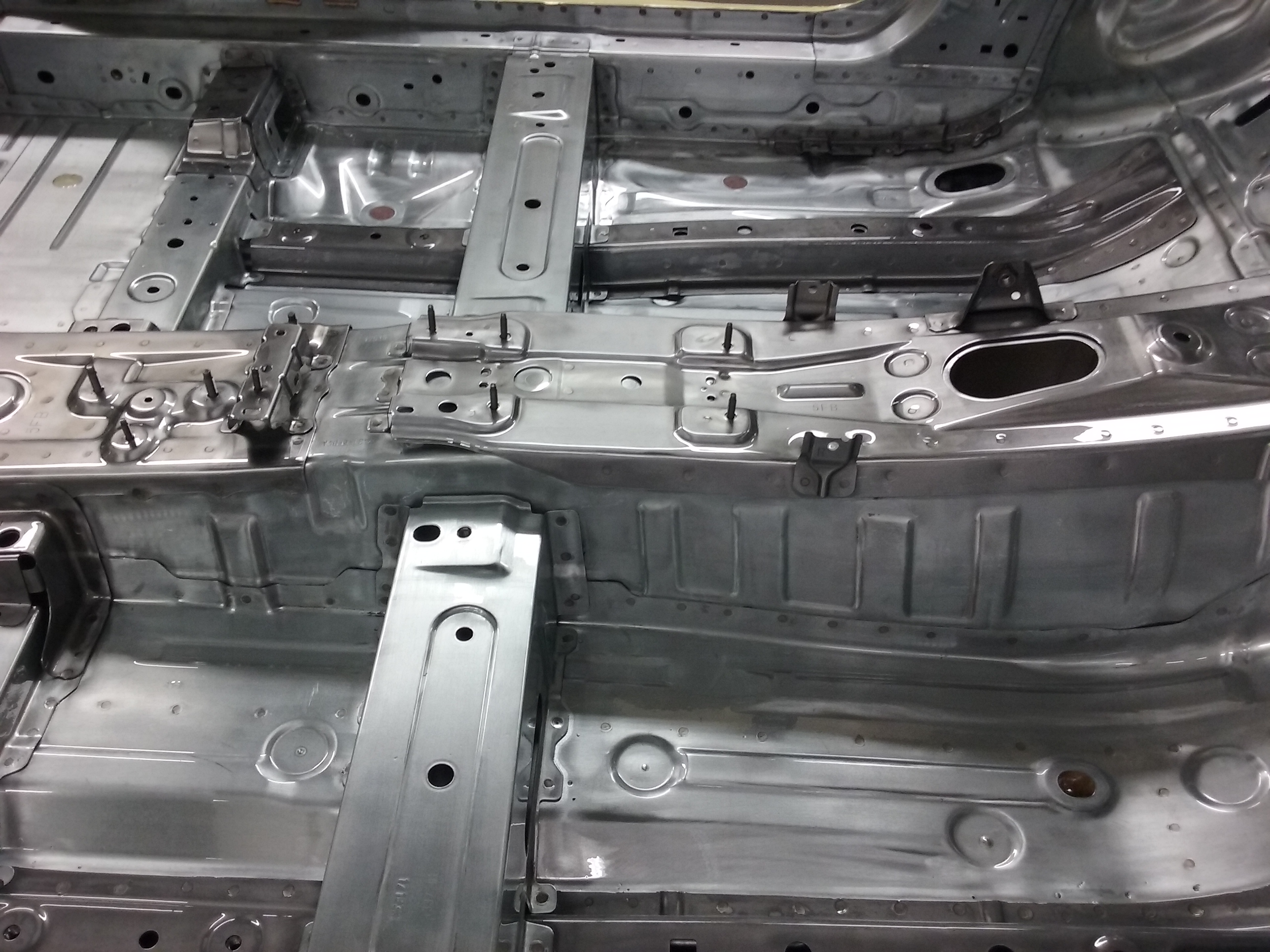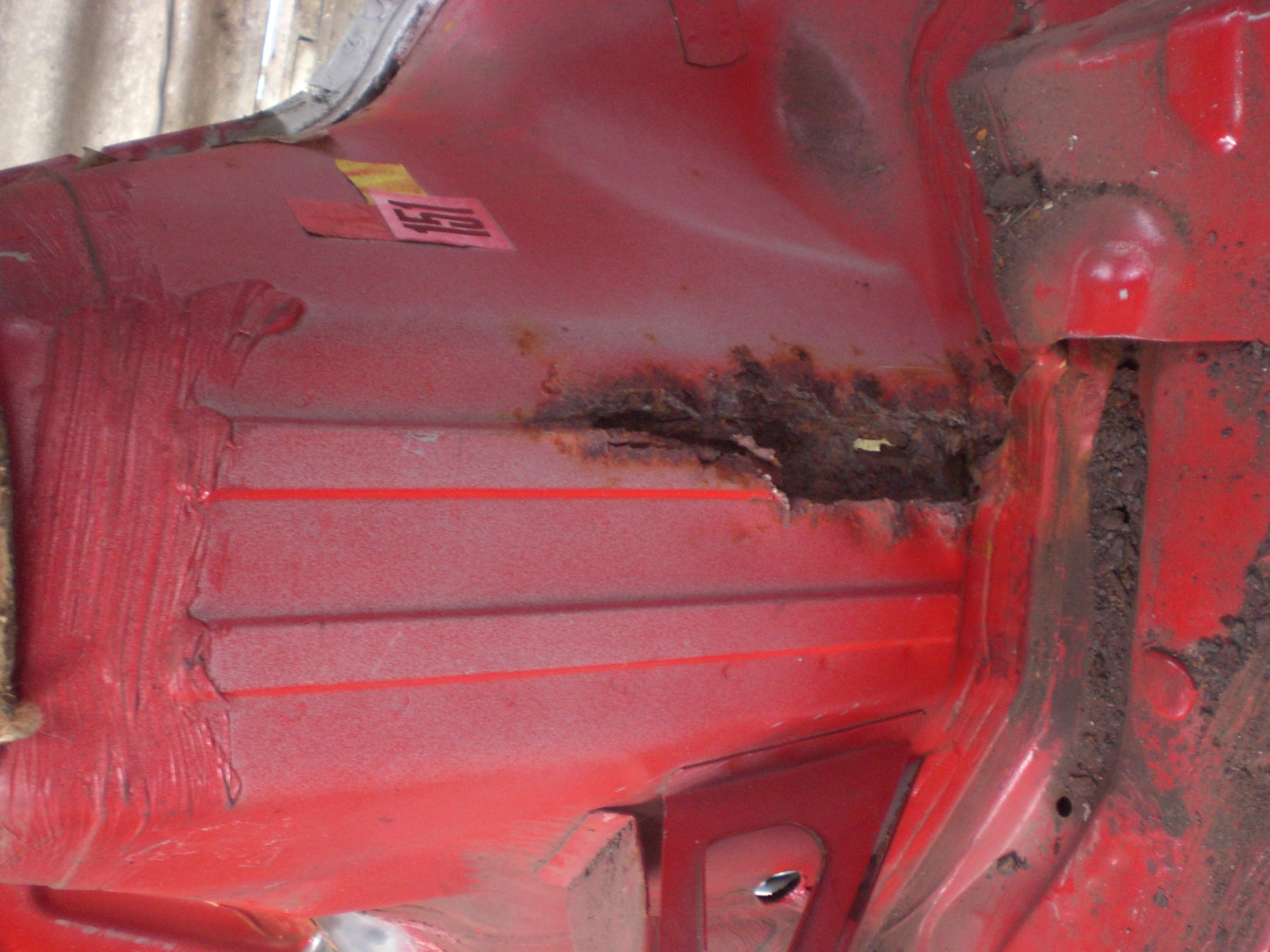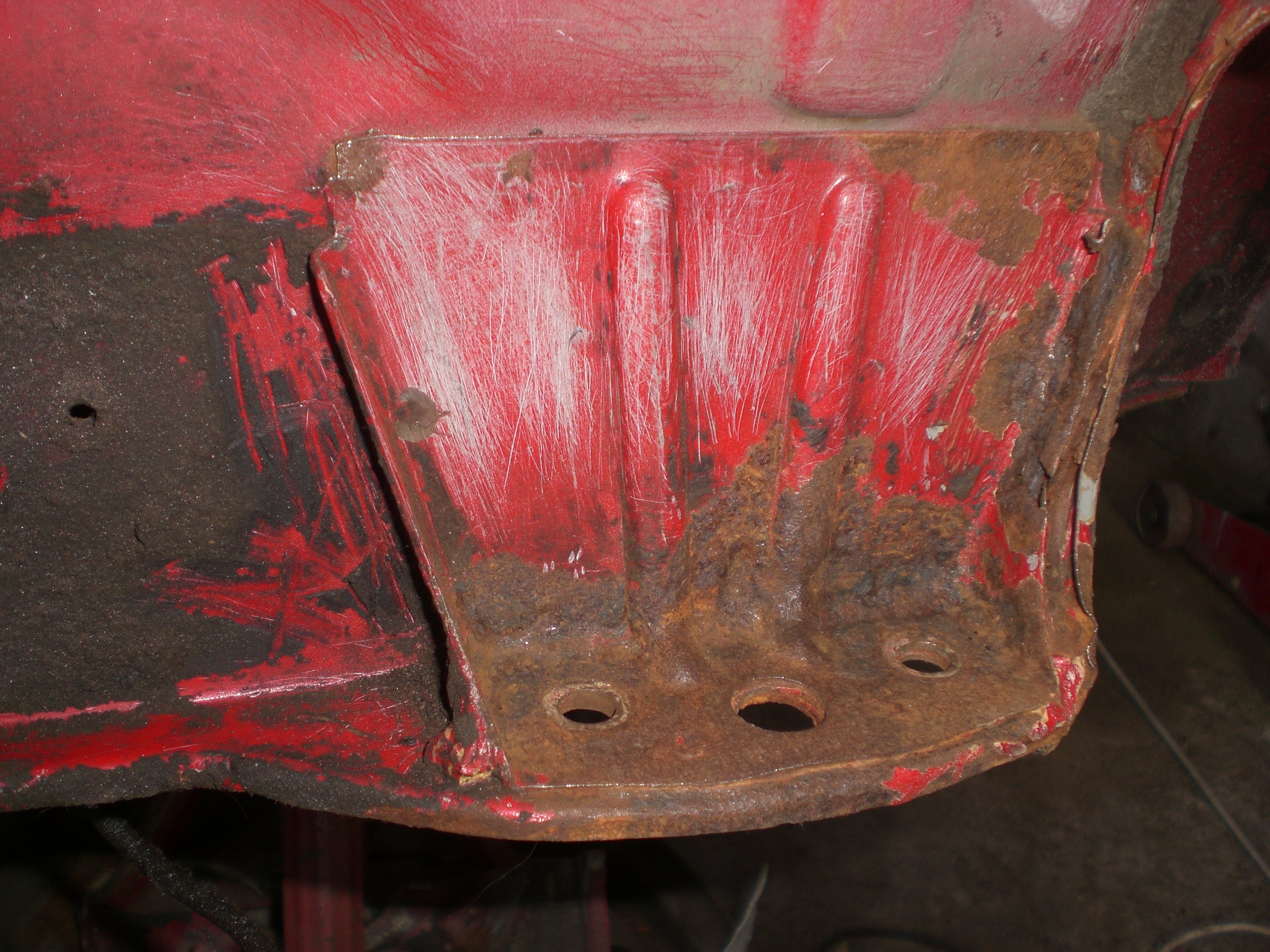 The passenger side reinforcement bracket at the suspension arm mount looked crusty, certainly too bad to leave alone.