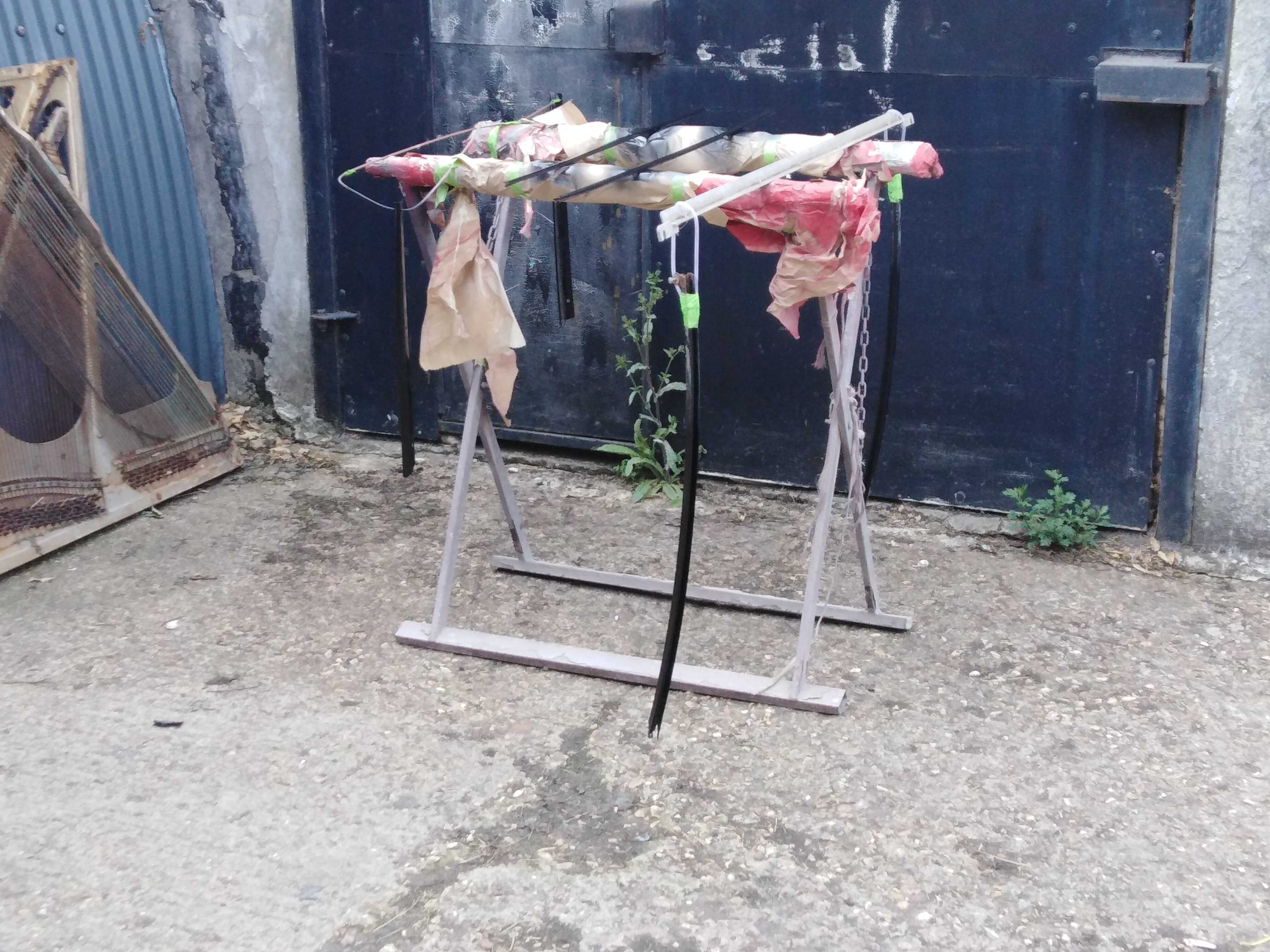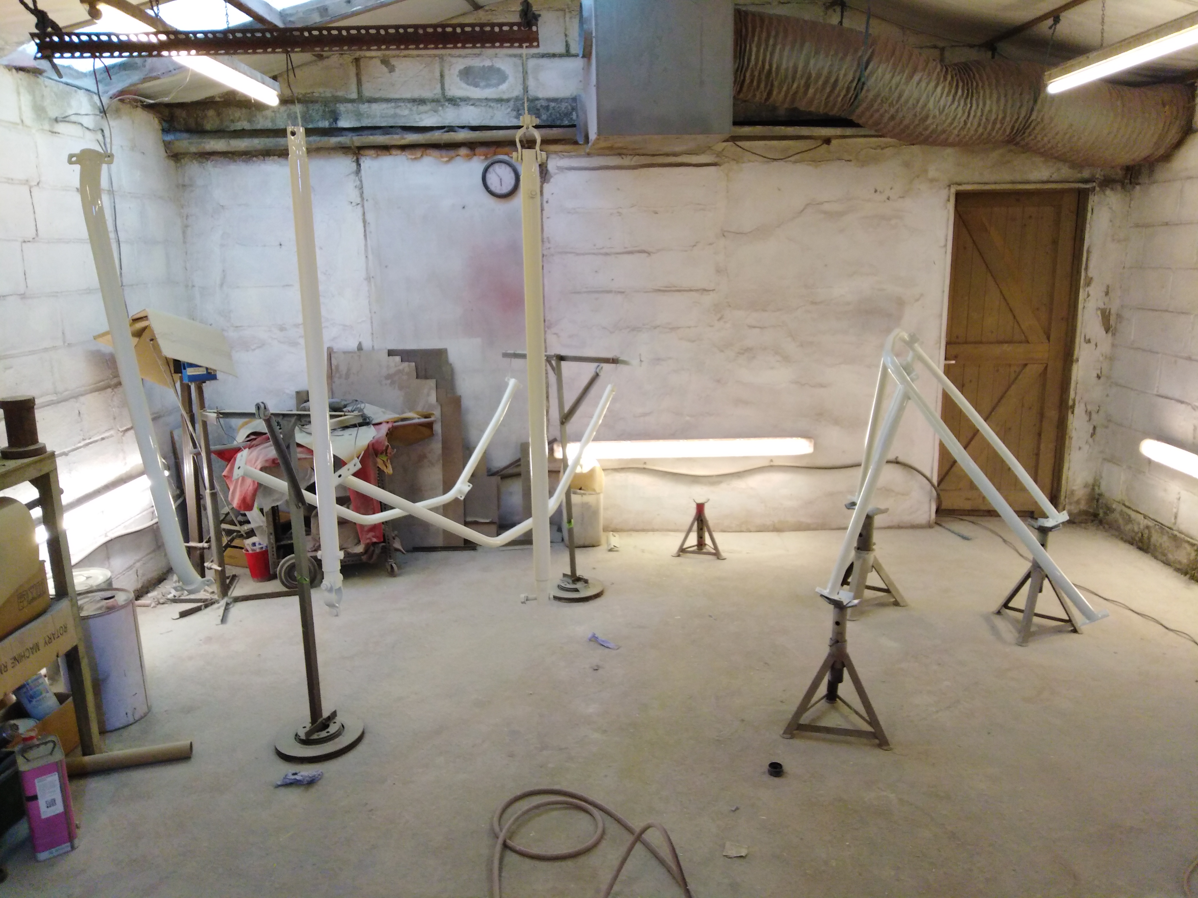 With those out of the way the white could be applied to the rest, utilised my home made wing mounting trestles to hang the larger A post bars from, rest from the bar I have attached to the roof for such things.
