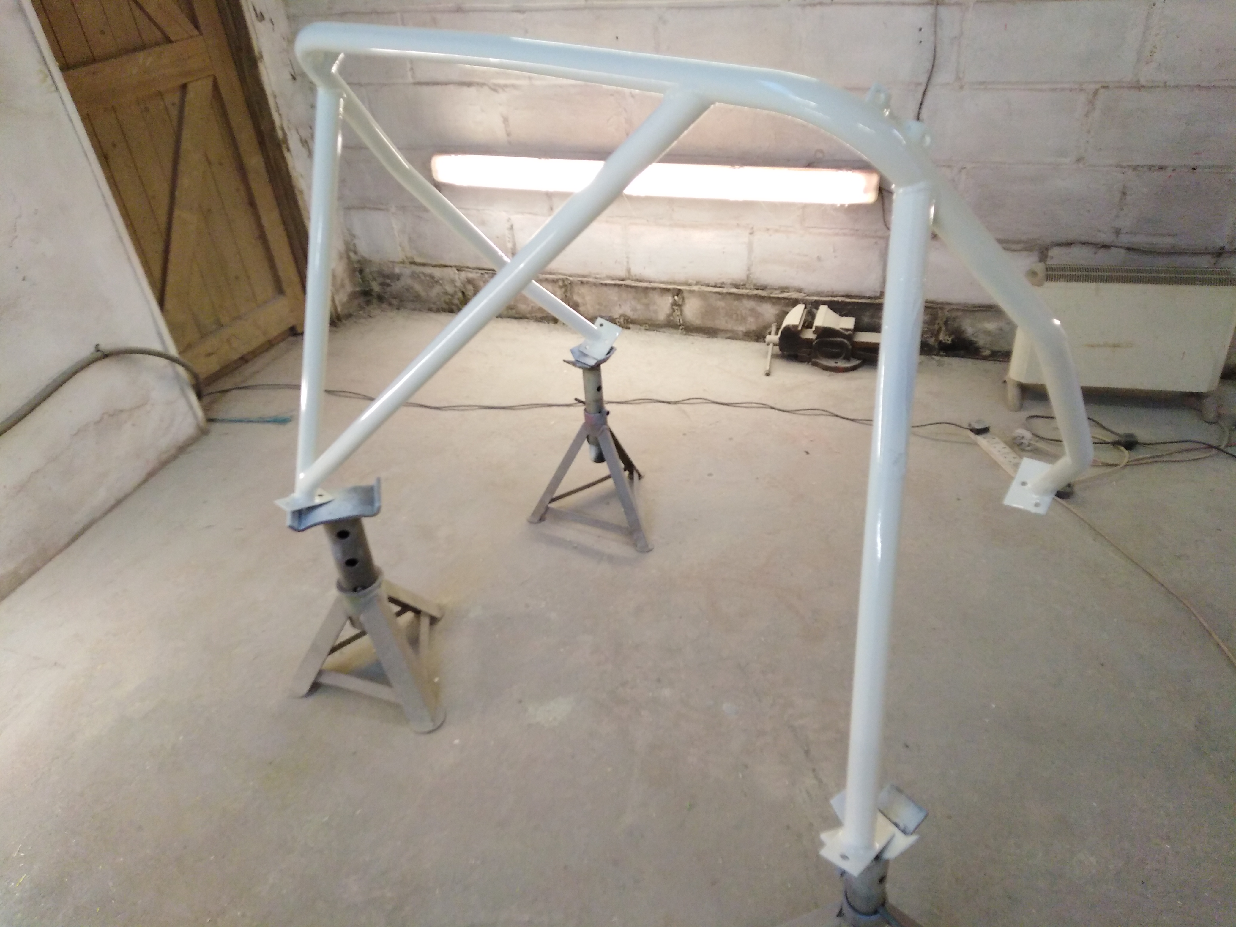 Took a bit of juggling to get everything in place, 6 pieces needed to be done in satin black, cage plus its 5 beams and assorted brackets needed body colour, all parts needing etch priming first.