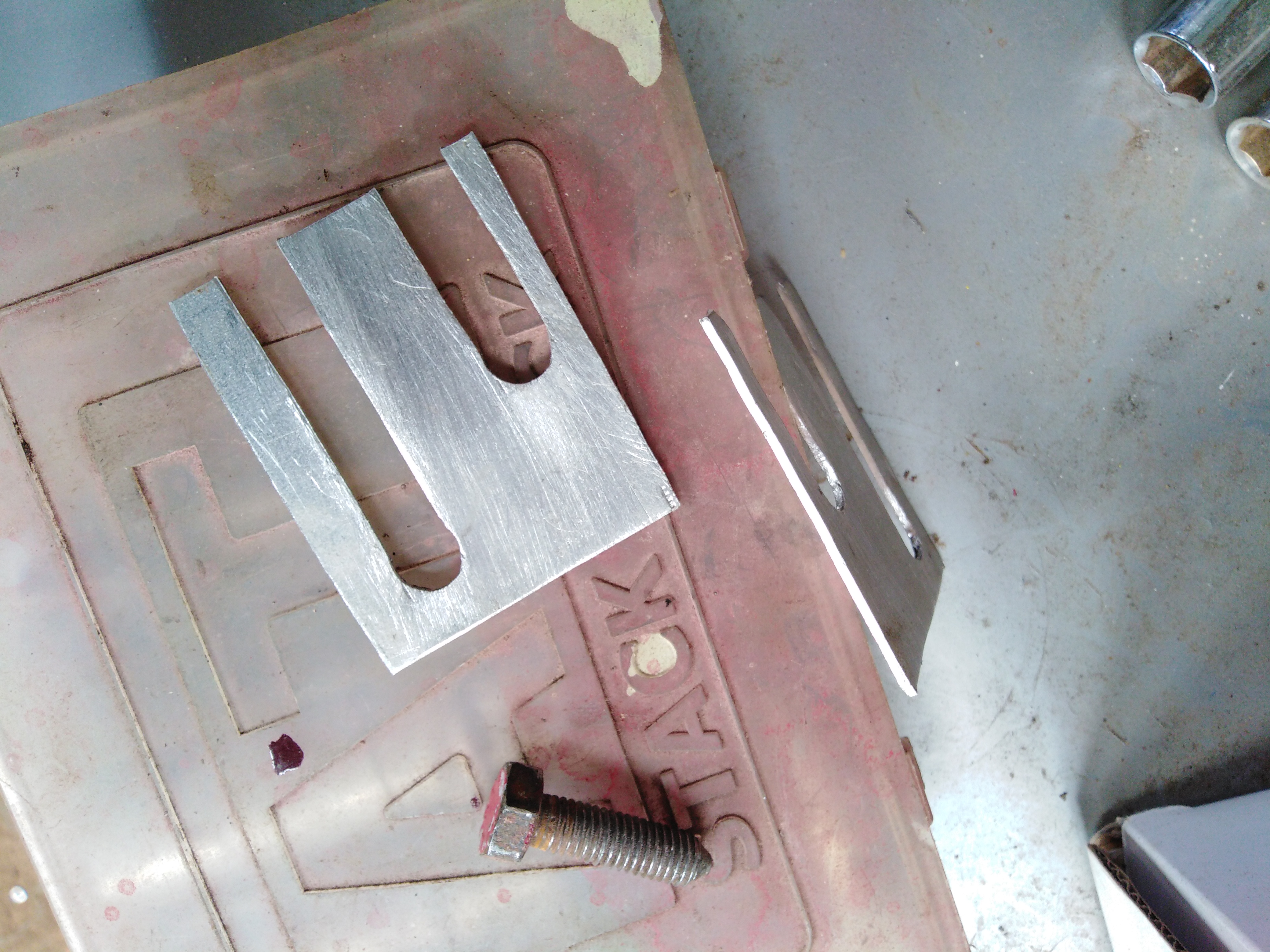 Making some out of mild steel is OK as long as you paint them or they'll soon rust, which isn't ideal! A handy sheet of aluminium made the perfect choice, just the right thickness, easy to cut and won't rust. With both the hinge face and door aperture painted oxidisation of the dissimilar metals won't be a concern either.