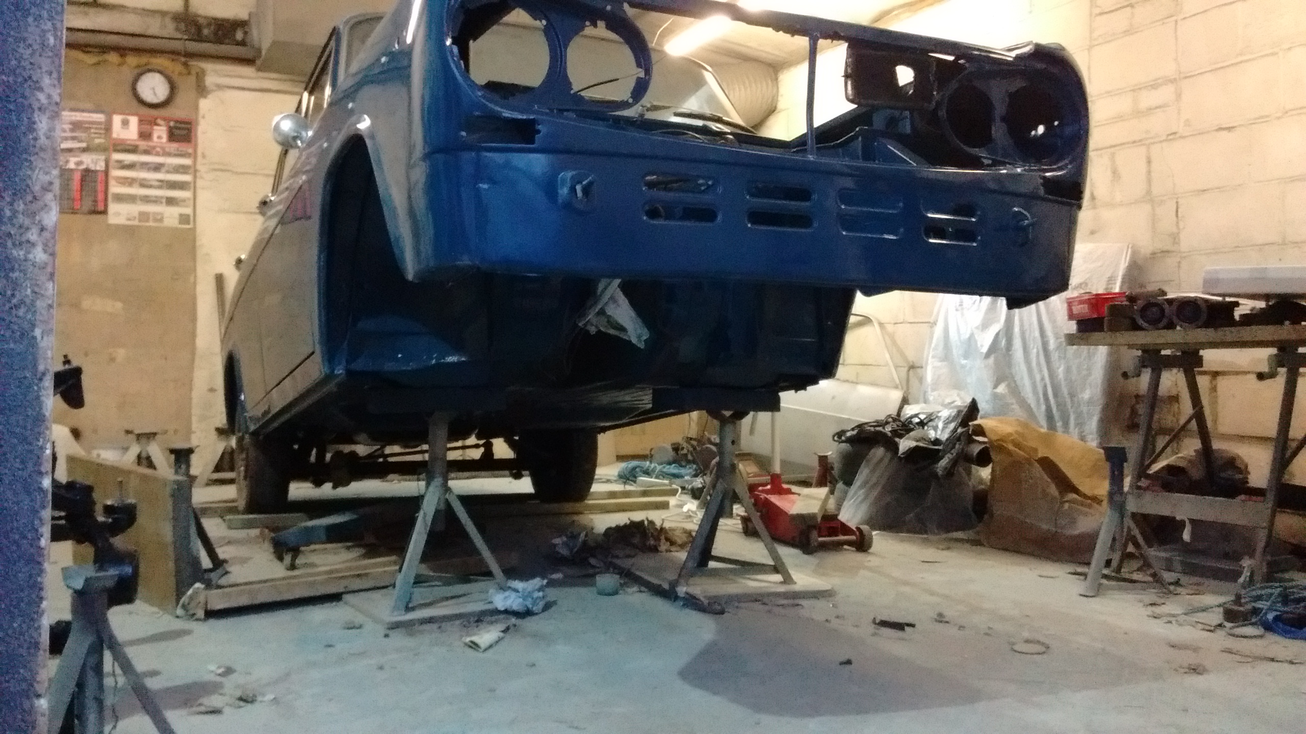 with some measuring I realised I'd have to get the front of the car up much higher to clear the engine, approx. 32" off the floor to be precise!