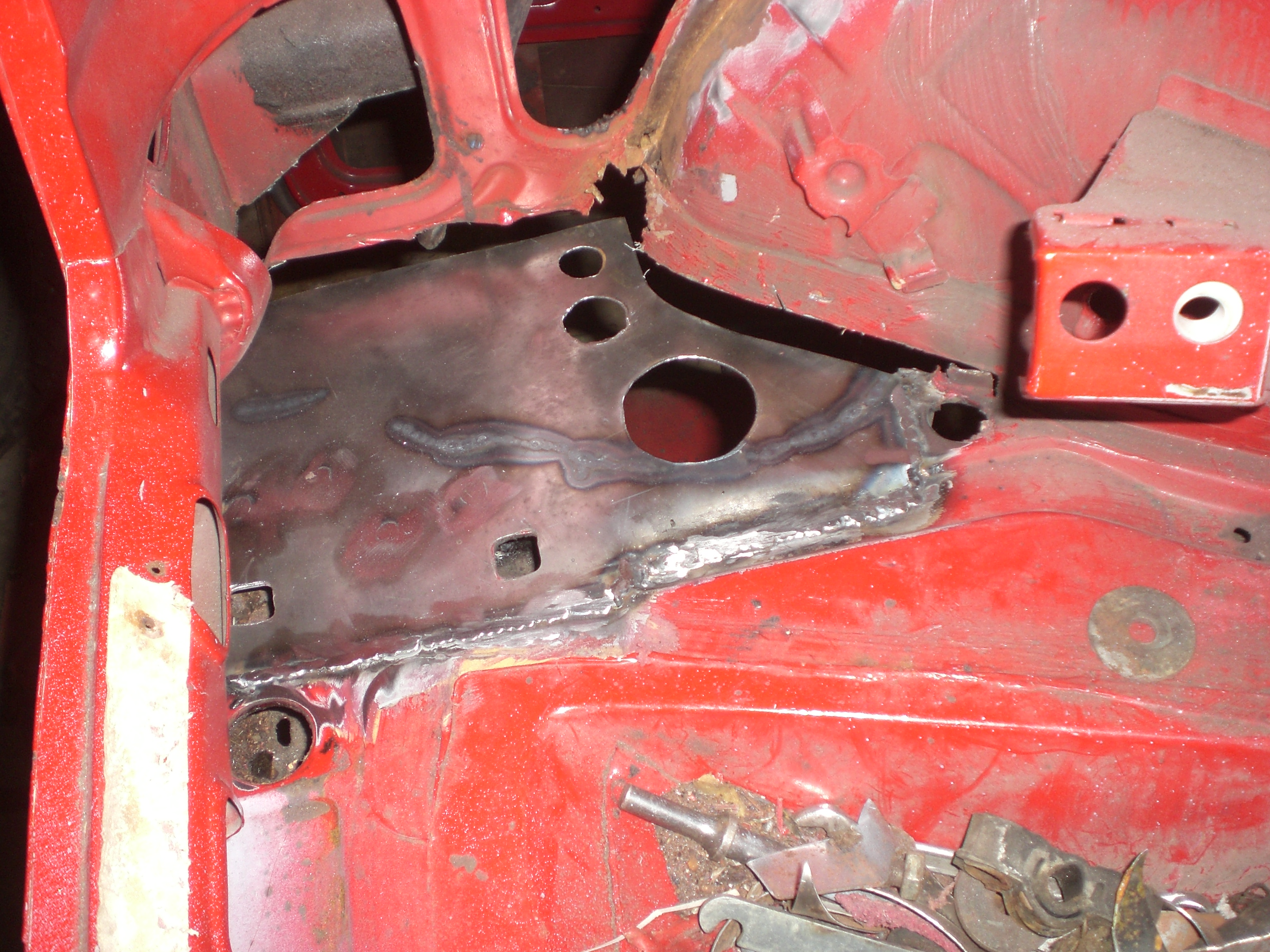 As the passenger side boot floor needed rebuilding the first job was to do the rear panel outer edge lip to match the drivers side, I did mean to post this bit actually just to show what is meant by "plug welds" for those interested to know..