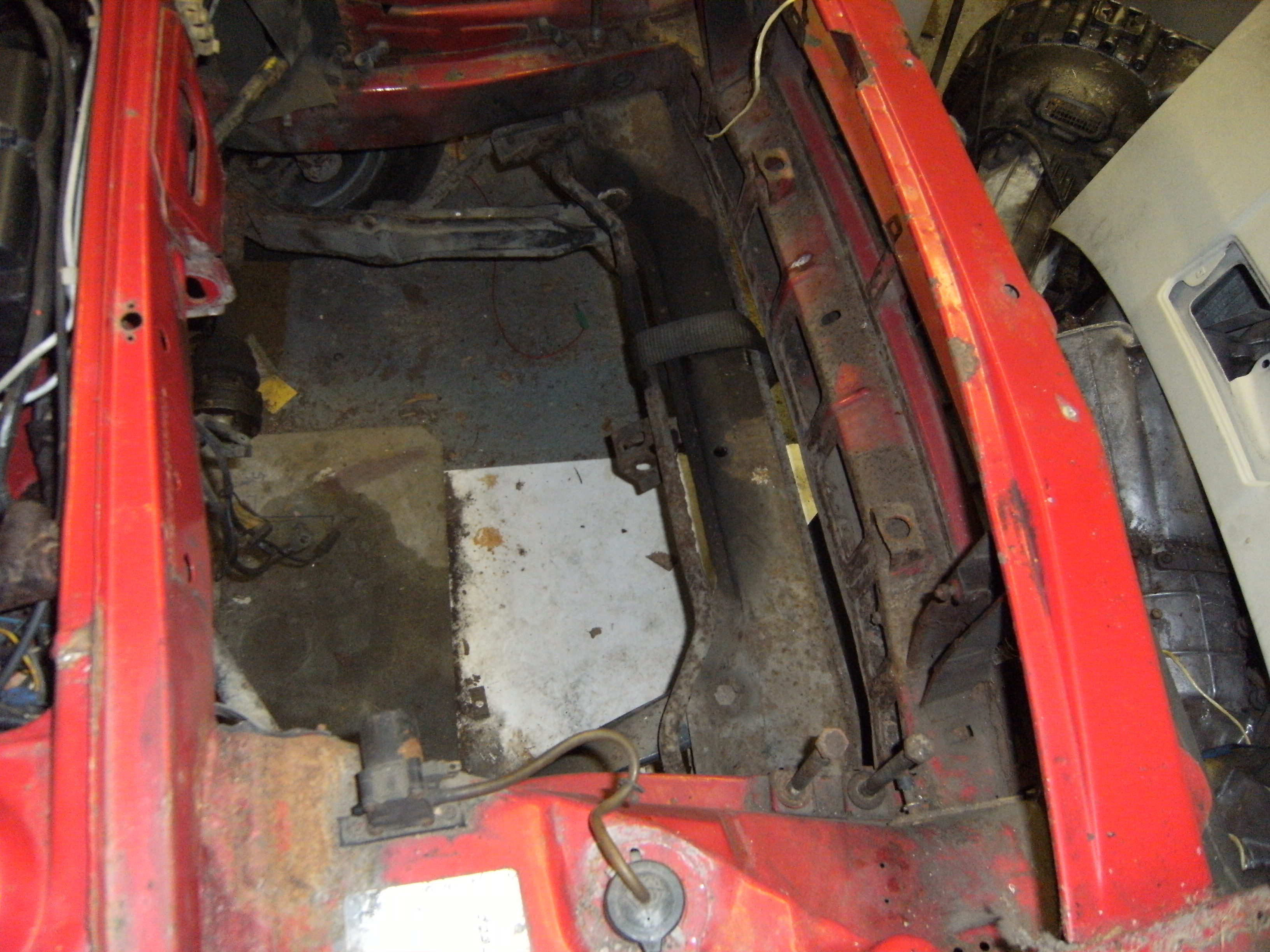 The front end is not too bad either - most of the bits are there but some brake pipes cut and fittings gone. The relays are gone as is the radiator but not too much rust and the turret tops are good!