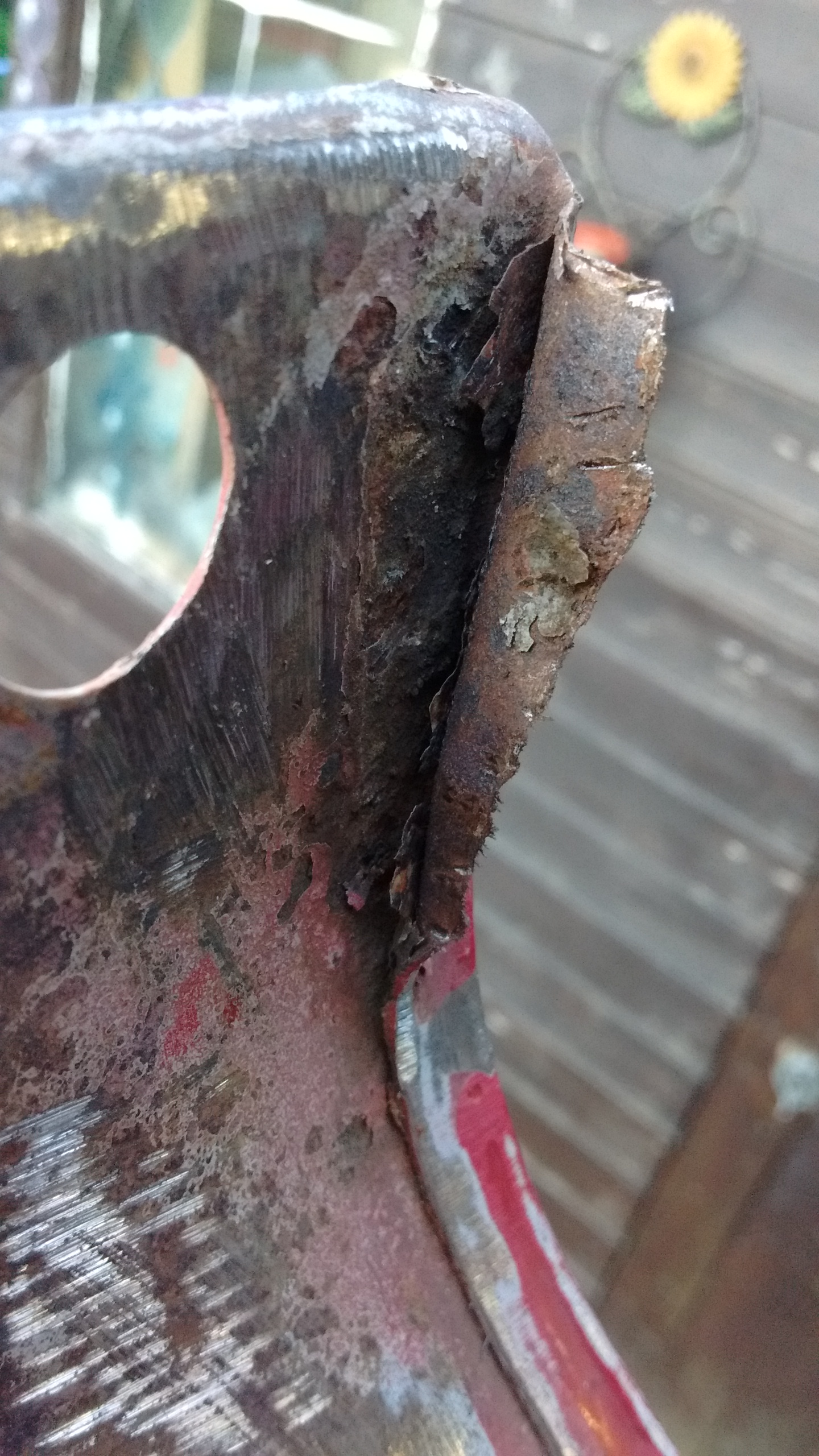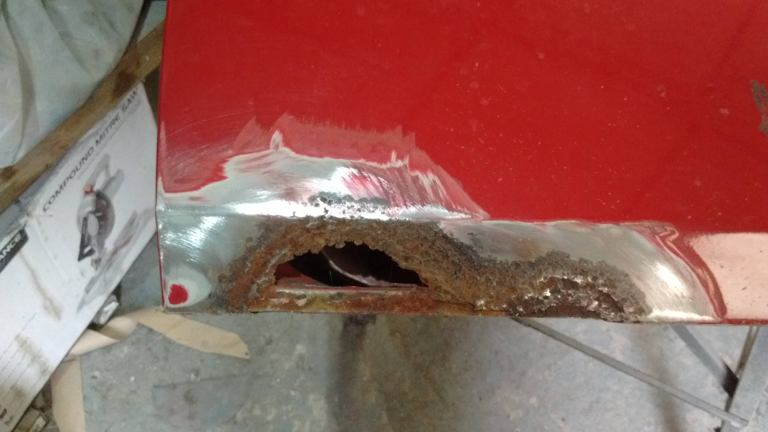 the flange is obviously well gone but the folded edge on the other side appeared ok, but what could be hiding under there? only way to find out is to fold it open