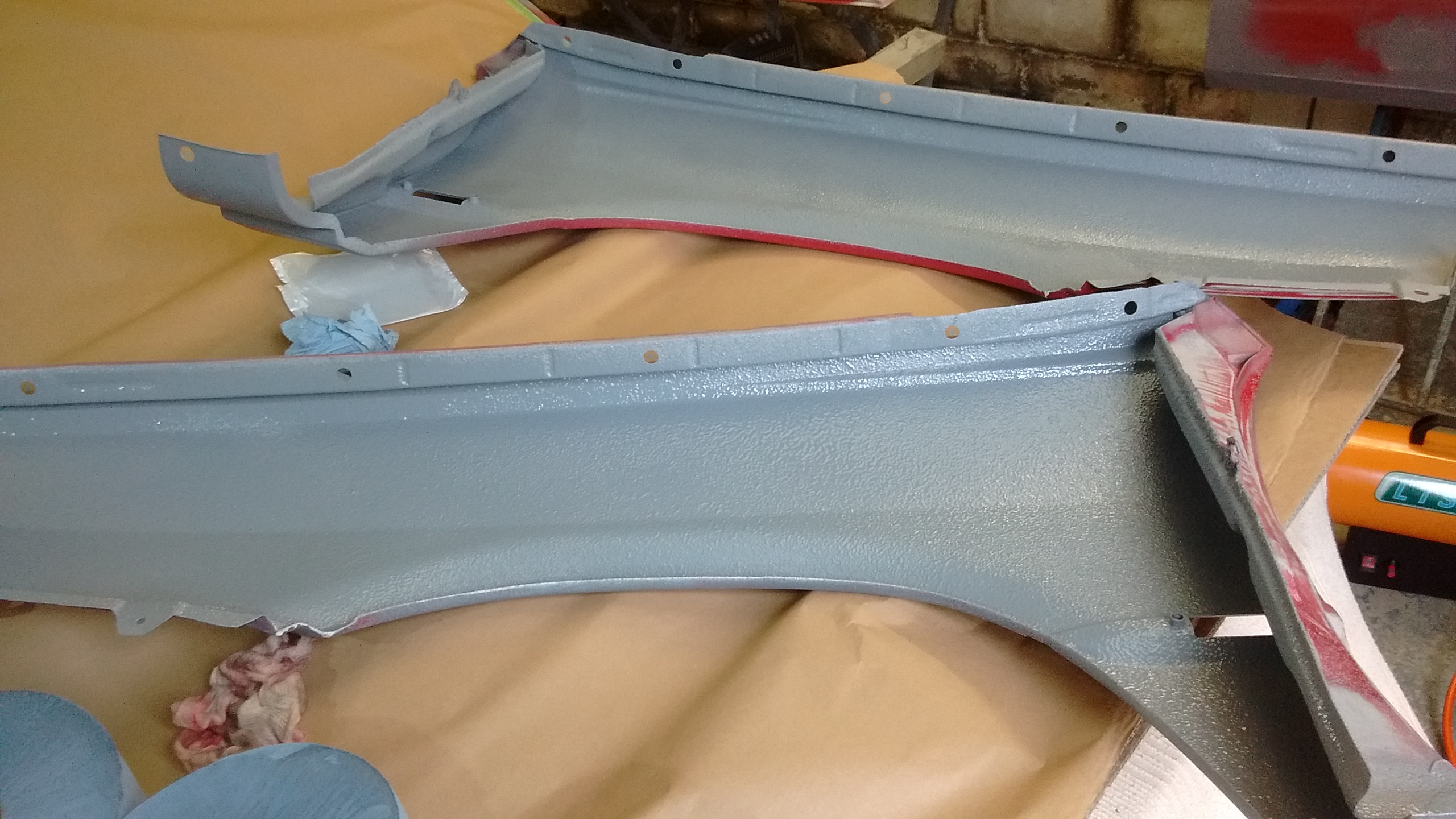 as most of you know there is also a huge amount of plastic and rubber items that need painting like the bumpers, side skirts and rear spoiler let alone some smaller items, these i'll do after the metal parts as space is an issue plus there will be plastic additives in the paint & primer to keep it flexible for them