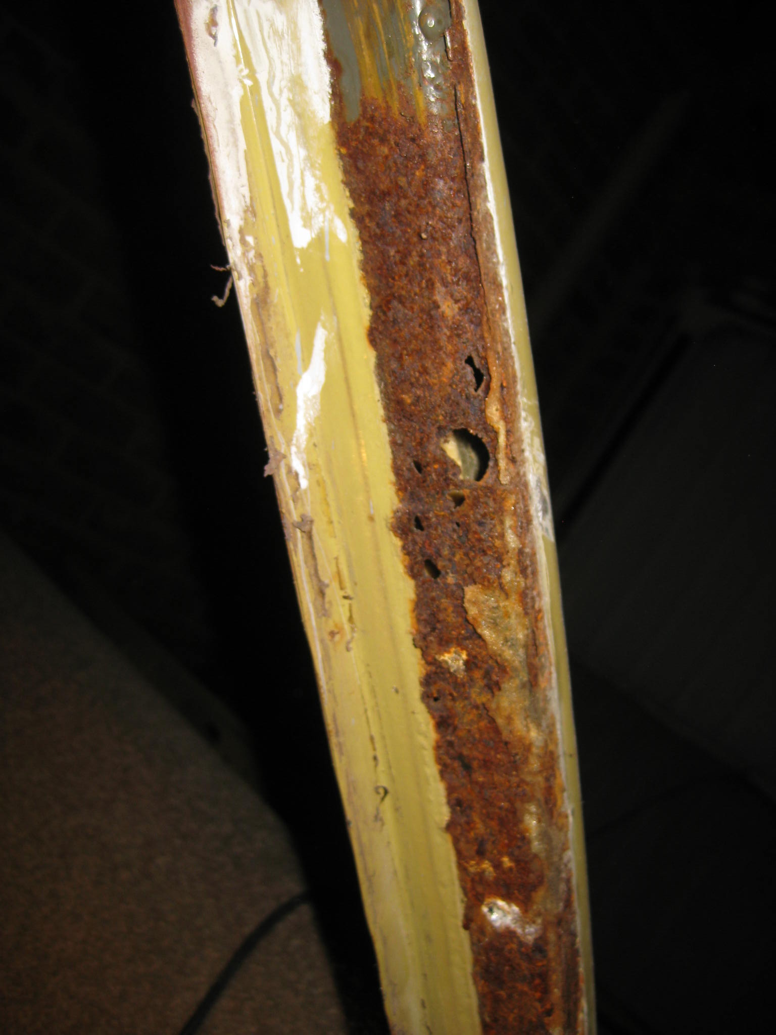 Outer skin of the pillar removed to reveal lots more corrosion....