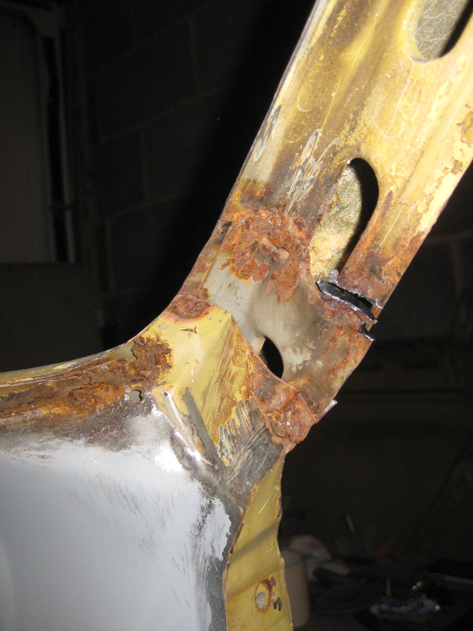 The 'A' posts on these cars are made up of 4 separate pieces and all welded together and then a closure panel pop riveted on. All sections are rotten and need major work.