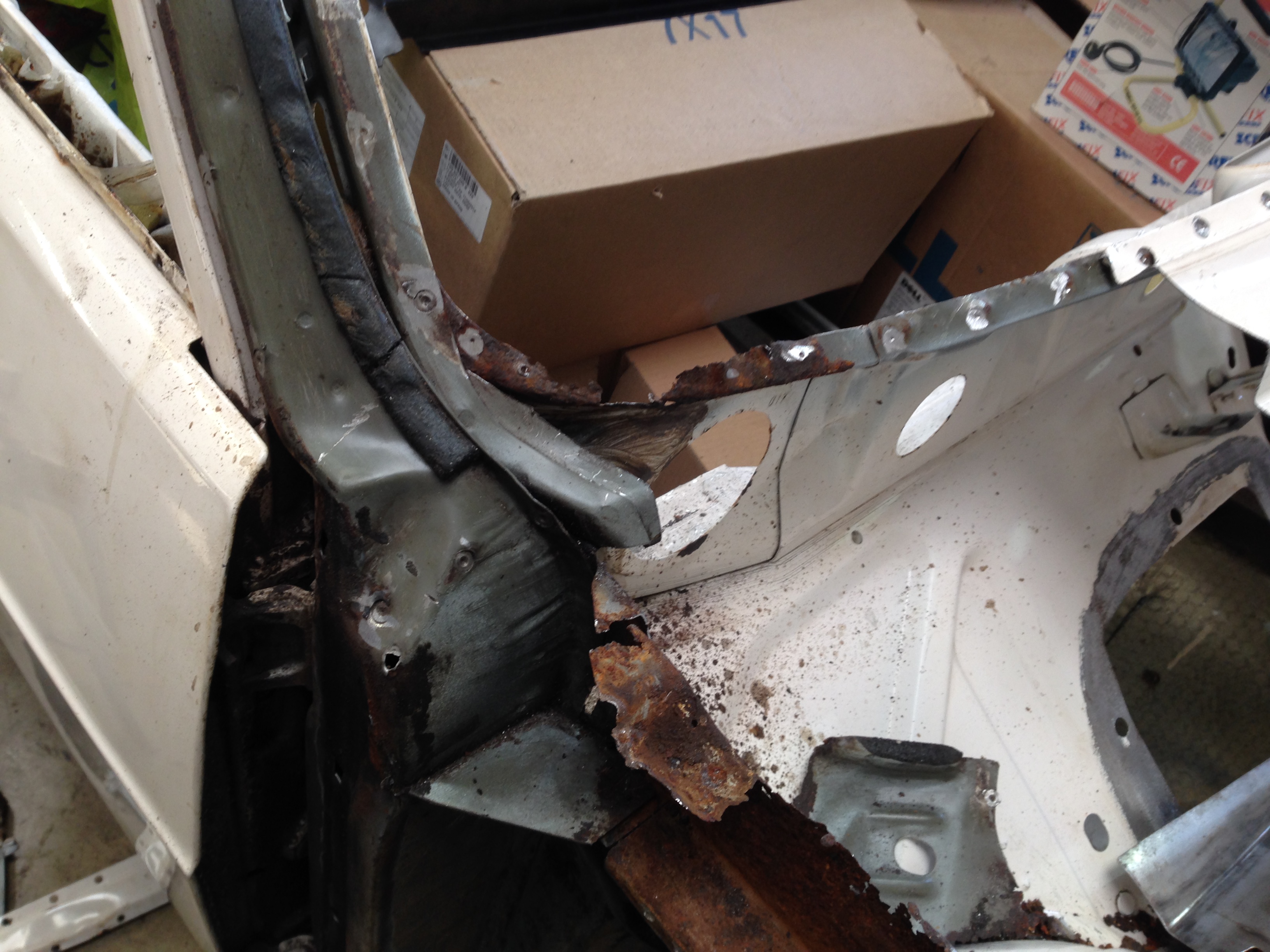 Body repairs have started again now - one thing I had noted thanks to Kev's thread is that the section of upper front panel that had been fitted was the wrong one !!