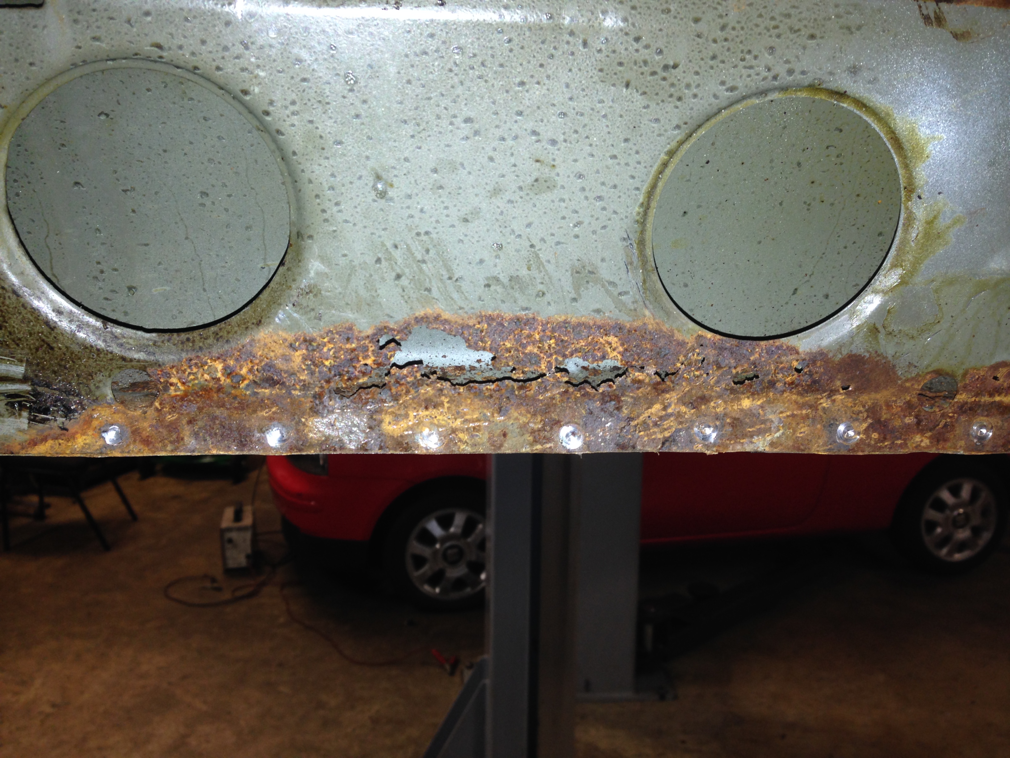 The original rear axle beam must have had water sitting in it as one of the spring seats looked like this