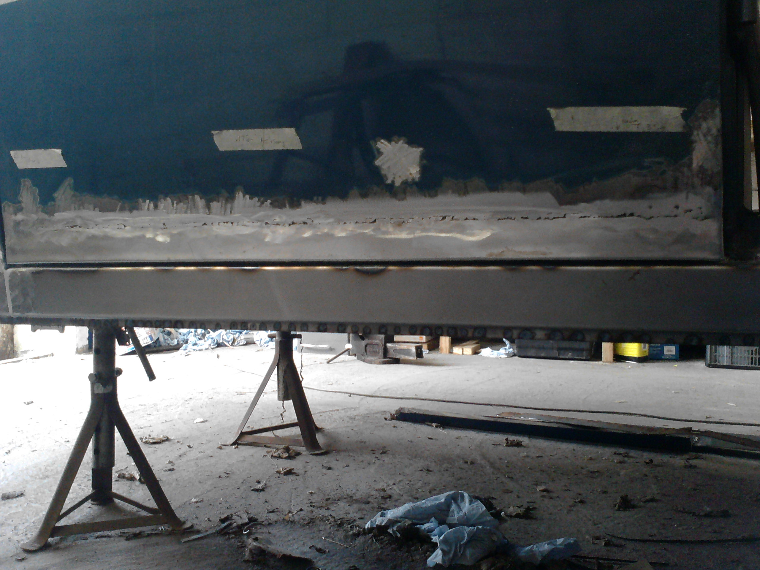 bottom plate was then welded into place, tacked along to start with keeping a check on alignment. then seam welded in stages.