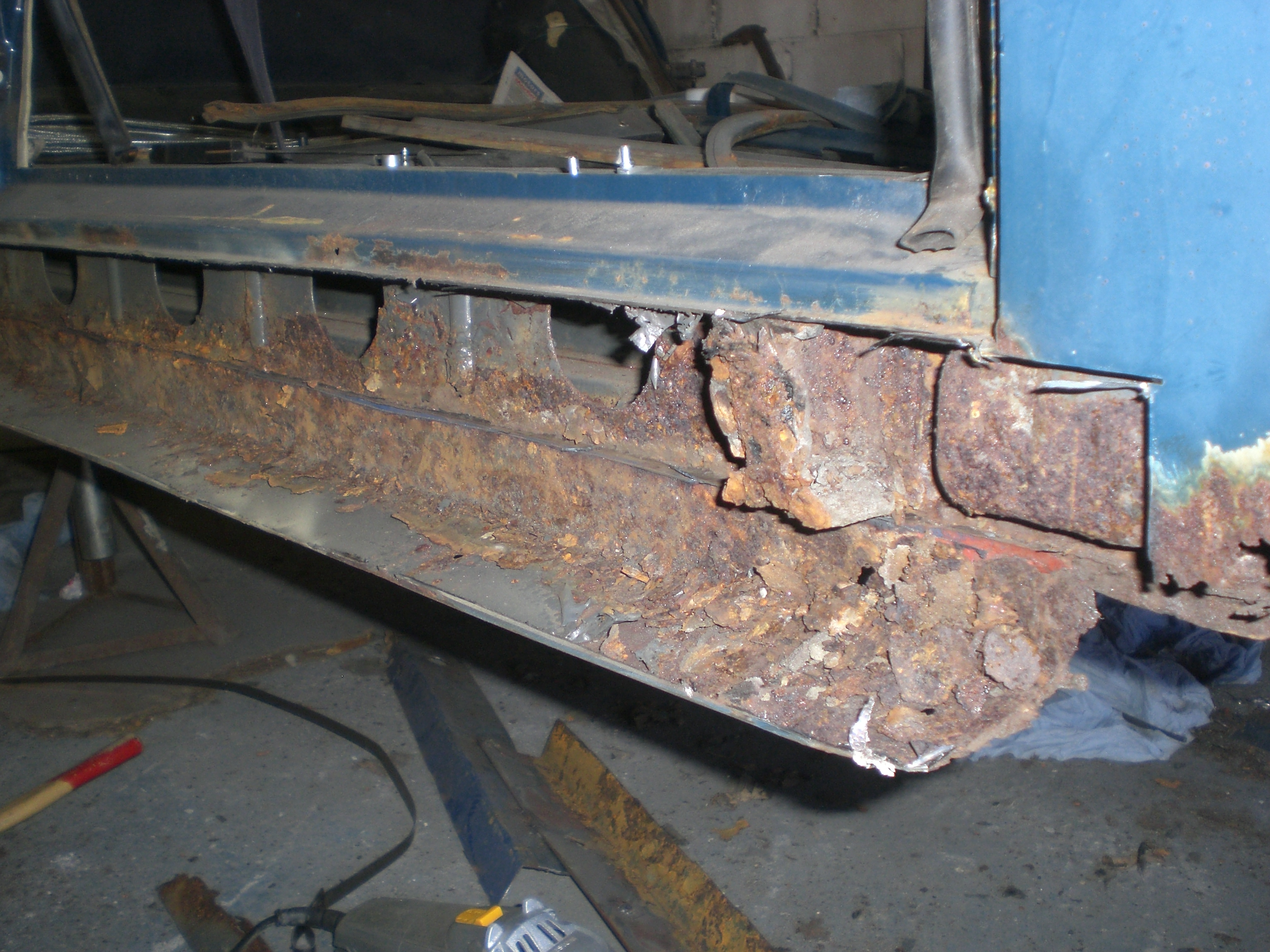 o/s sill looked like it might be a little less solid than the n/s one was and so it proved once the rear jacking point was probed. although it was generally solid but crusty it did have the odd thin section so it had to be chopped out.
