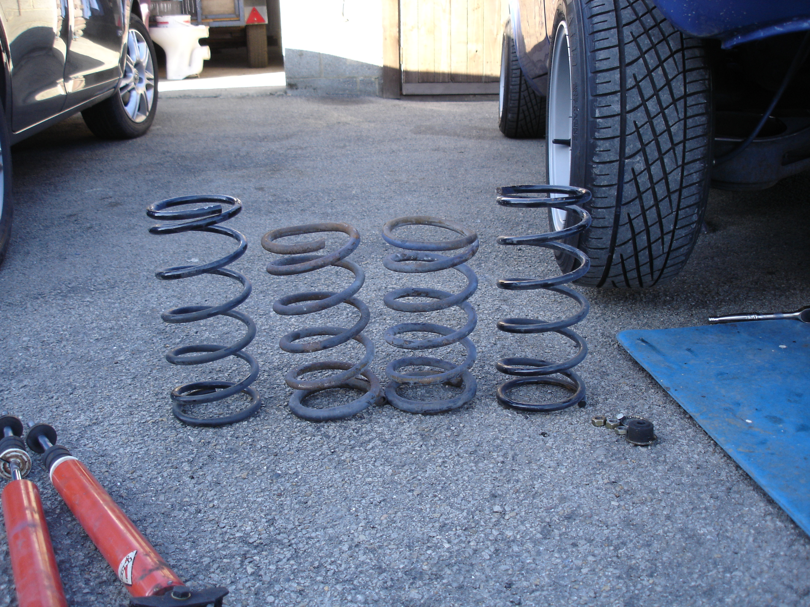Next thing i wanted to look at on the car was the suspension. Iv had a Justsuds lowering kit on it for 3 yrs and always thought it was a bit high in the rear compared to the front (20mm difference). Lately iv been talking to john and Keith about his suspension, trying to find a solution! Then i went and found some lower rear springs stashed away in the back of the garage. I tried them on the car and today i got to try them out on a good run. Iv found that although the car sits level now, it looks way too low for road use and the rear tyres catch the arches on bumps! To be honest these 13/7 wheels seem a little too wide, theyr always going to be prone to catching. So tonight iv put the Justsuds rear springs back in and now i need to make the front 20mm higher to level the car out. I think fitting alfa33 front spring pans will raise it 10mm and then maybe making some kind of 10mm spacer to go between those and the bearing!