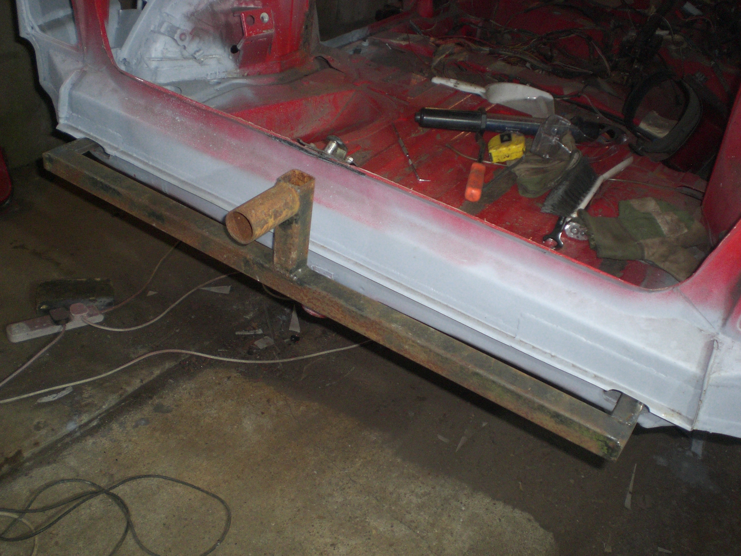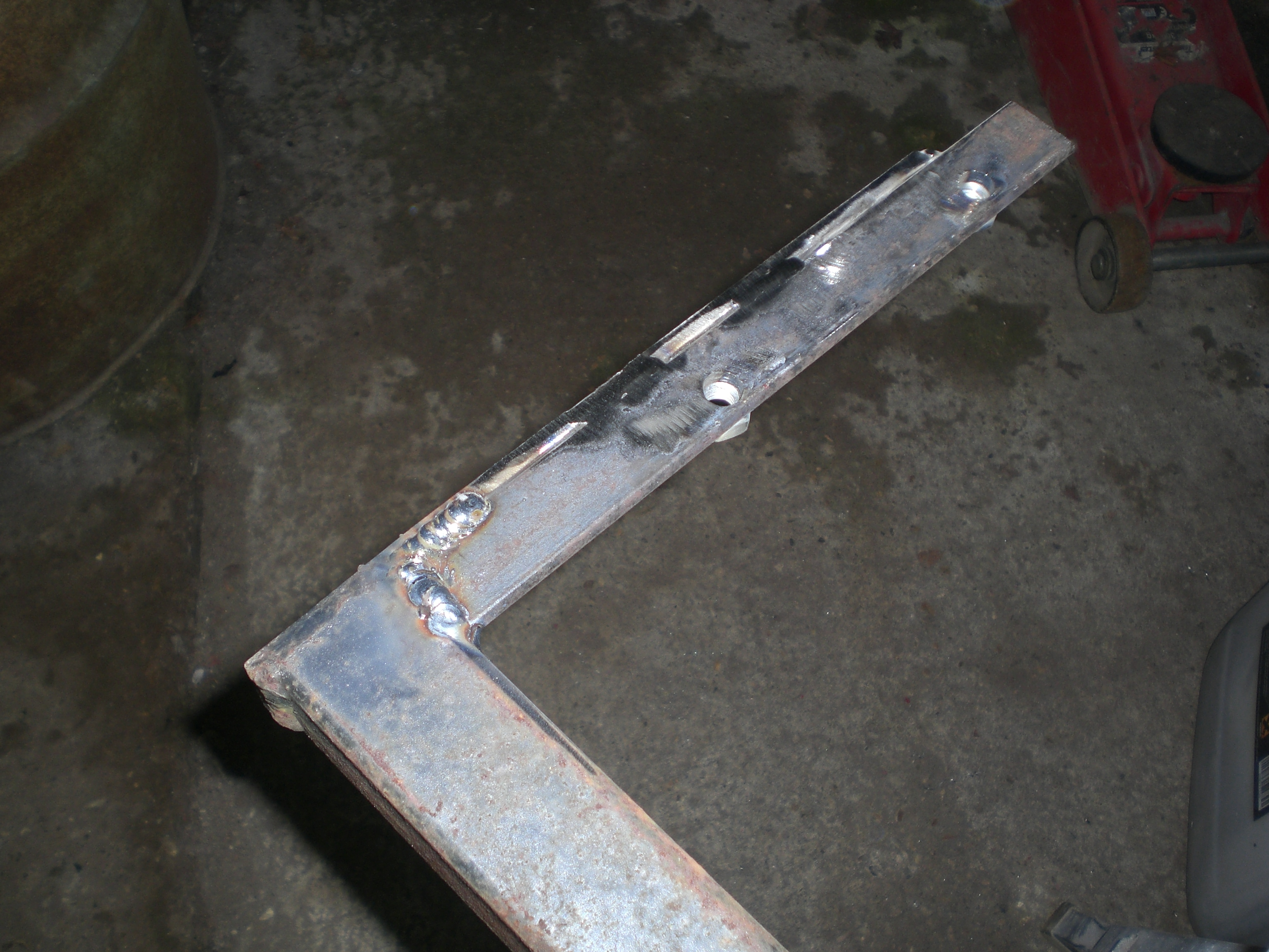 Just to ad the belt and braces approach I ran a piece of angle forward to the seat mounts. Not really necessary as all the other cars I've had on this tilter got far less bracing but I had stuff to hand so why not!