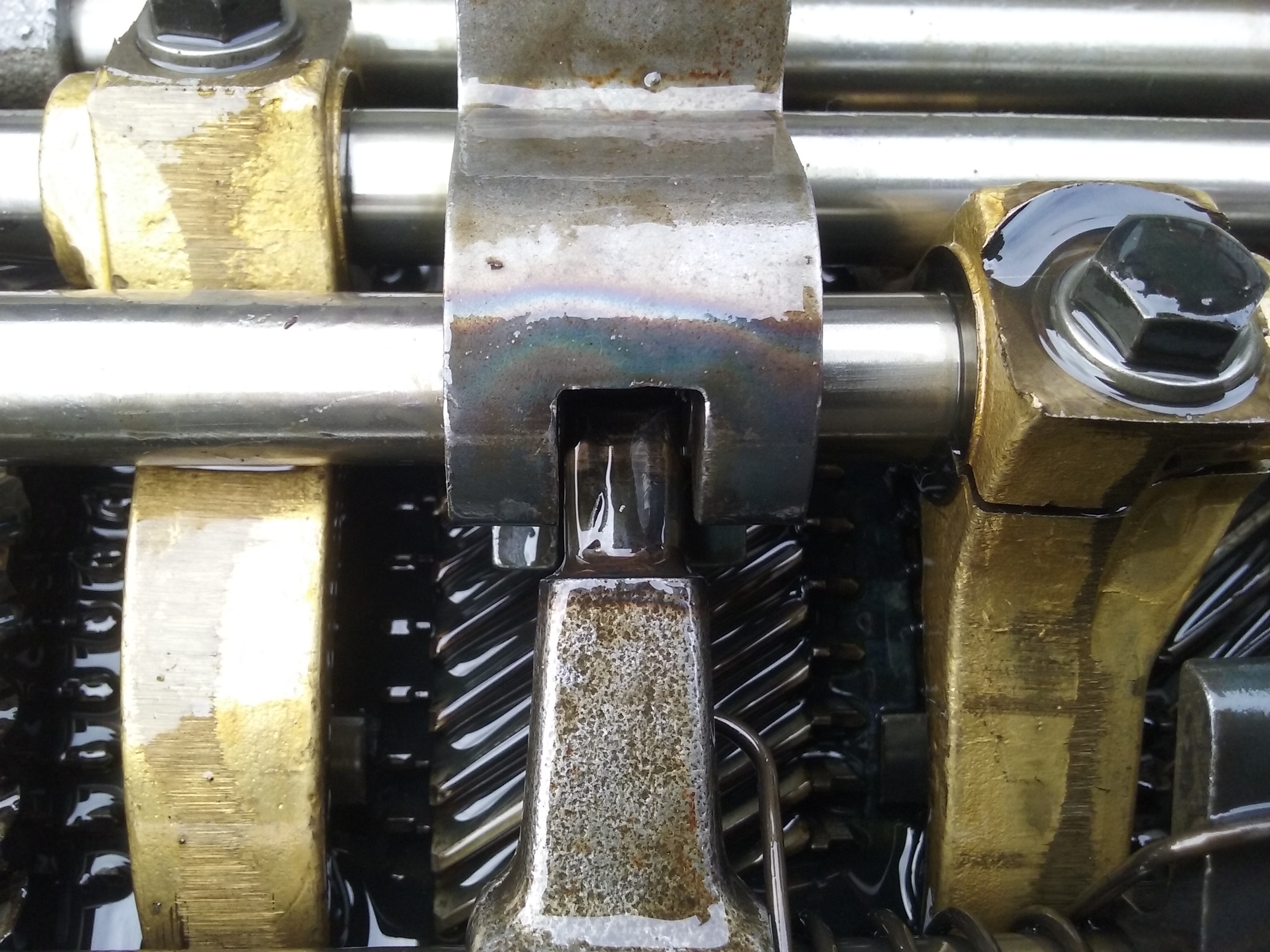 Question : What is the worn bit here ? If you waggle to check neutral, the arm pops out if you push too hard. Is it the arm or the removable piece with the cut out? Obviously, this is a Sud ti gearbox
