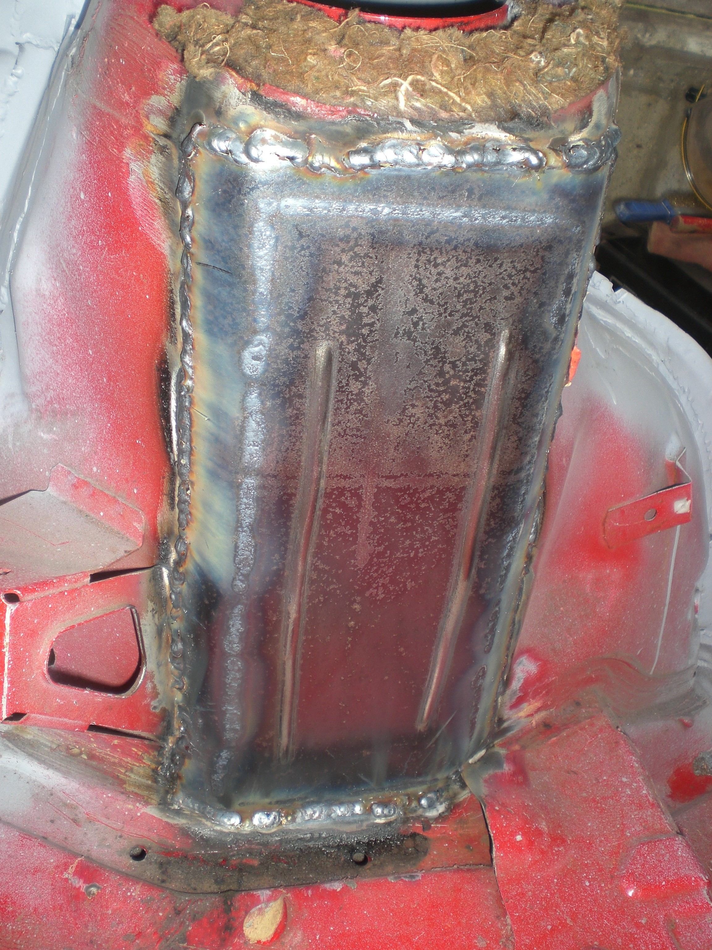 This was welded on the inside of the car and overlapping the original thin inner wing for strength, also welded along the bottom edge to the chassis rail top edge.
