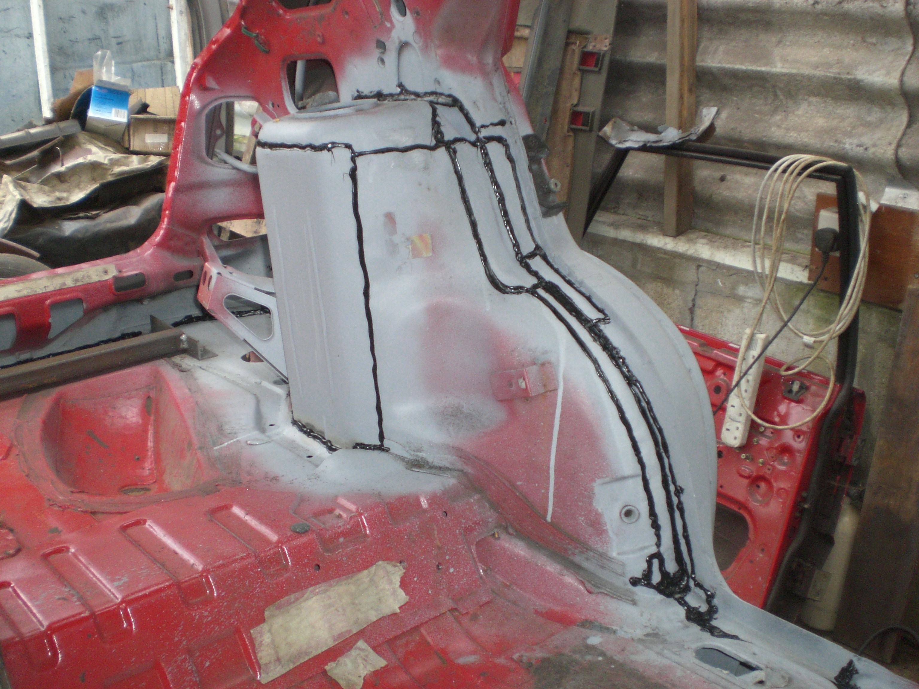 With everything welded the outer seam sealer went on, inner rear arches are now mostly sealer