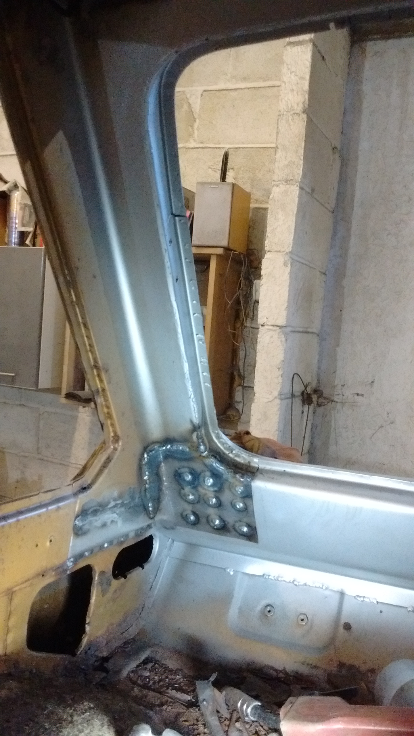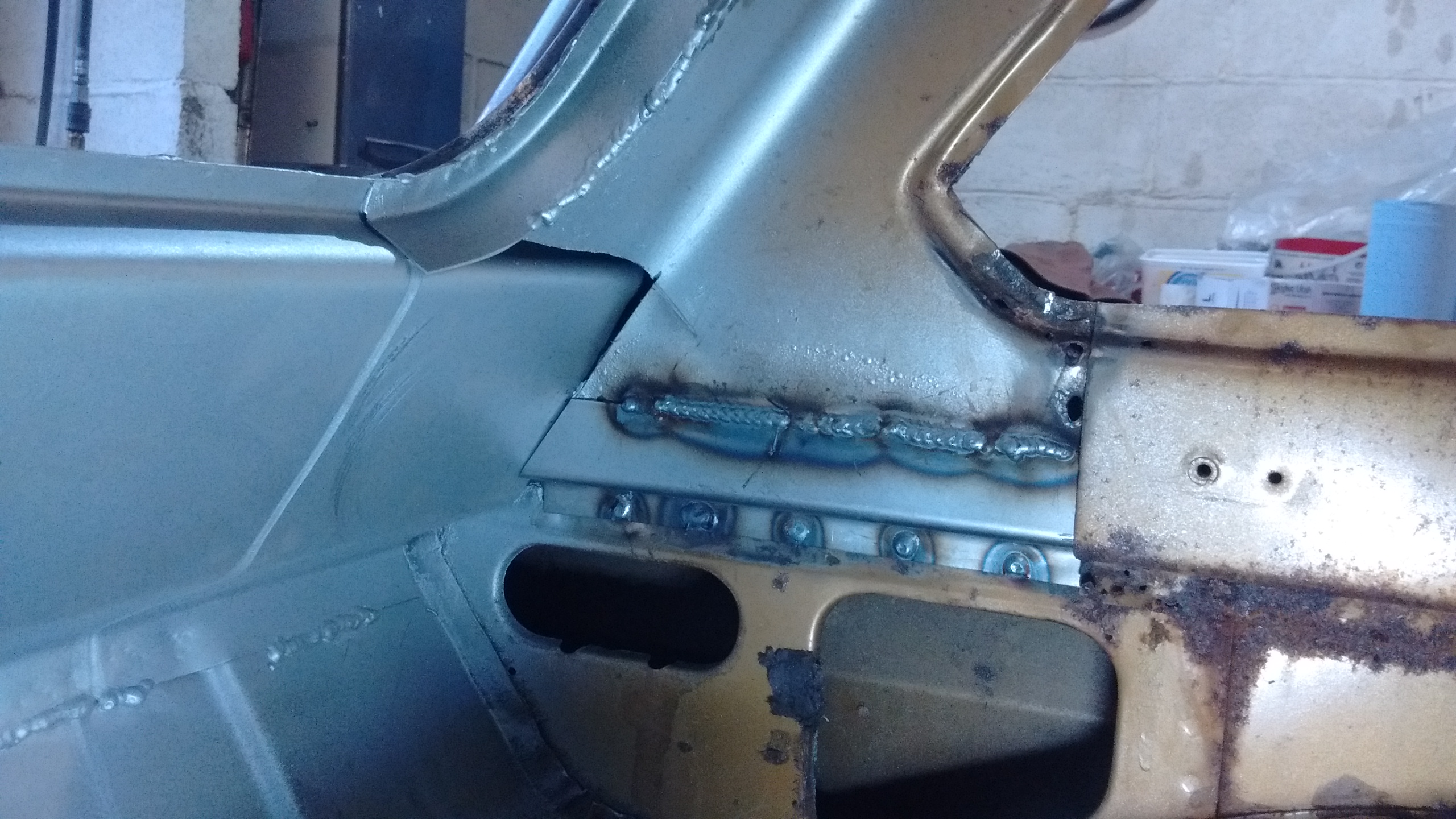 above the C pillar repair the seam had a few holes in it so that got chopped out, a new plate made up and welded in