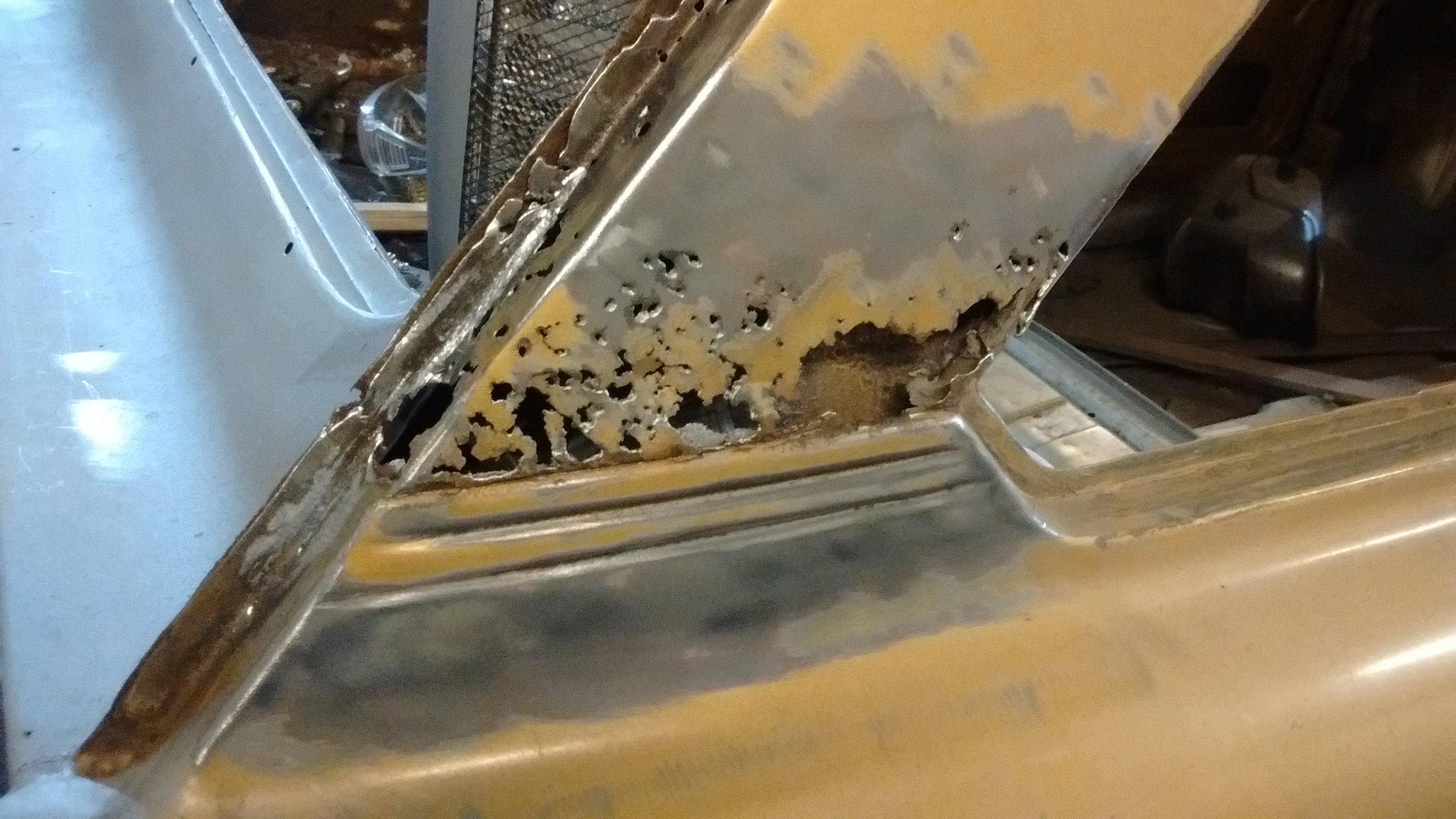 the drivers side outer C pillar had some rot around the 1/4 top, handily along some parallel swage lines