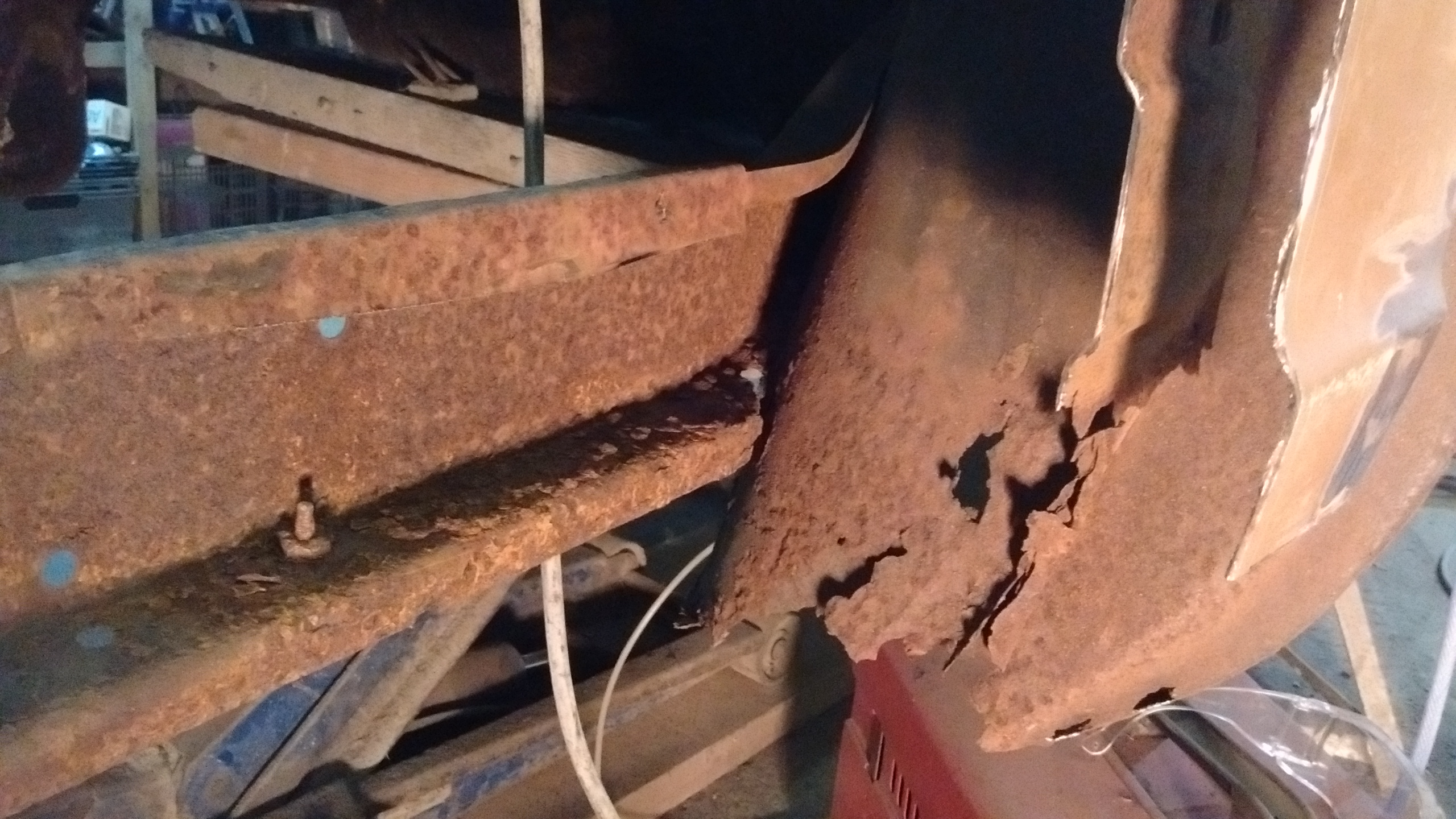 now the inner panel is off it revealed that the chassis rail needs repair, better to find out now I guess