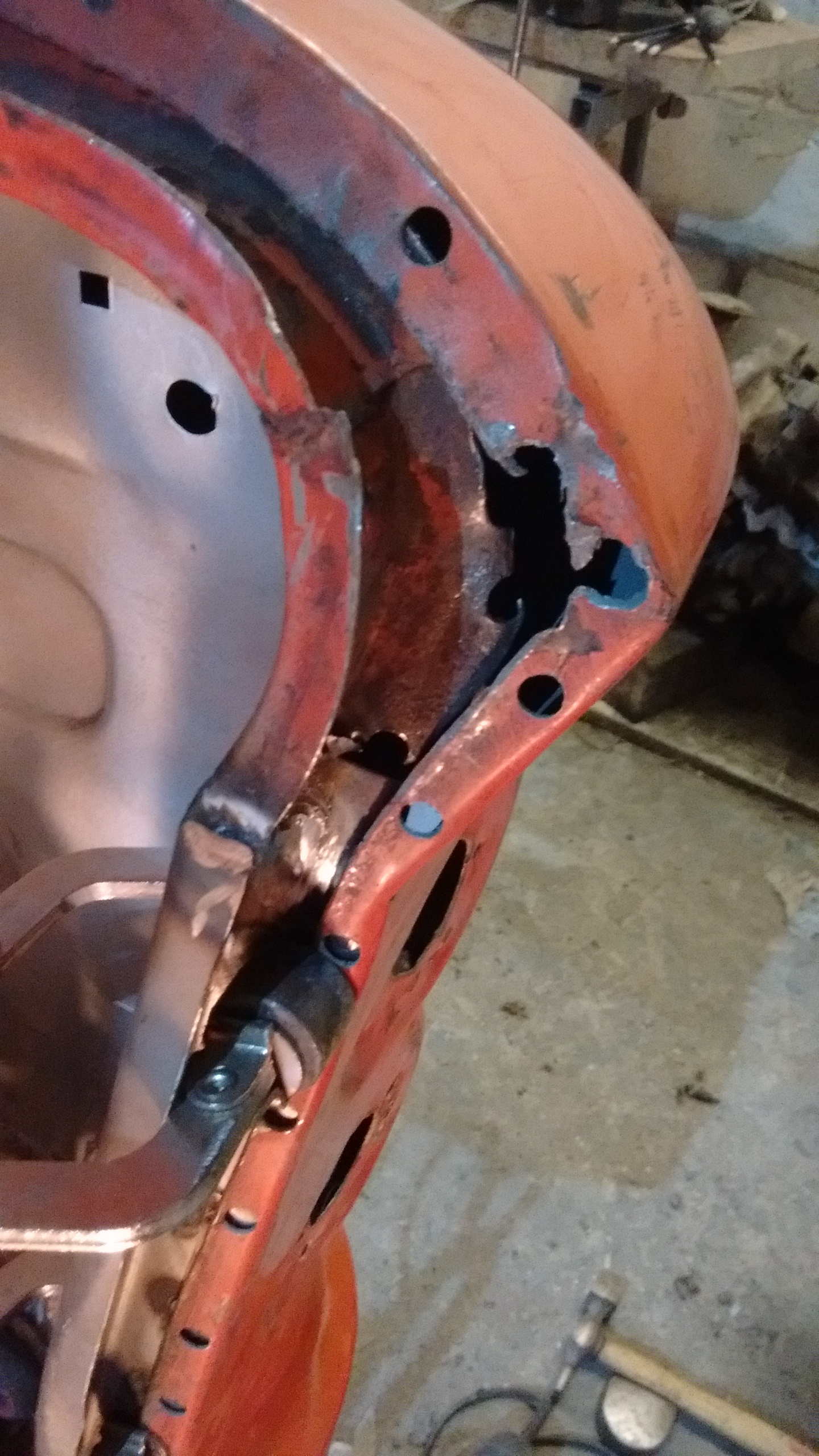 the corner section needed to blend into the inner rear scuttle and still look a bit like it was supposed to so instead of welding along the edge I plugged it