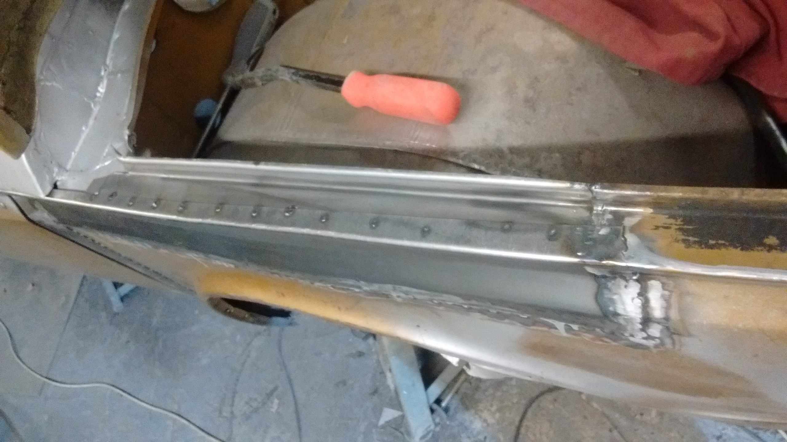 the previously made repair sections which got etch primed to seal some zinc in are now covered over with seam sealer, that should stop any moisture getting between the joint. once we're done a good dose of waxoyl should complete the job.