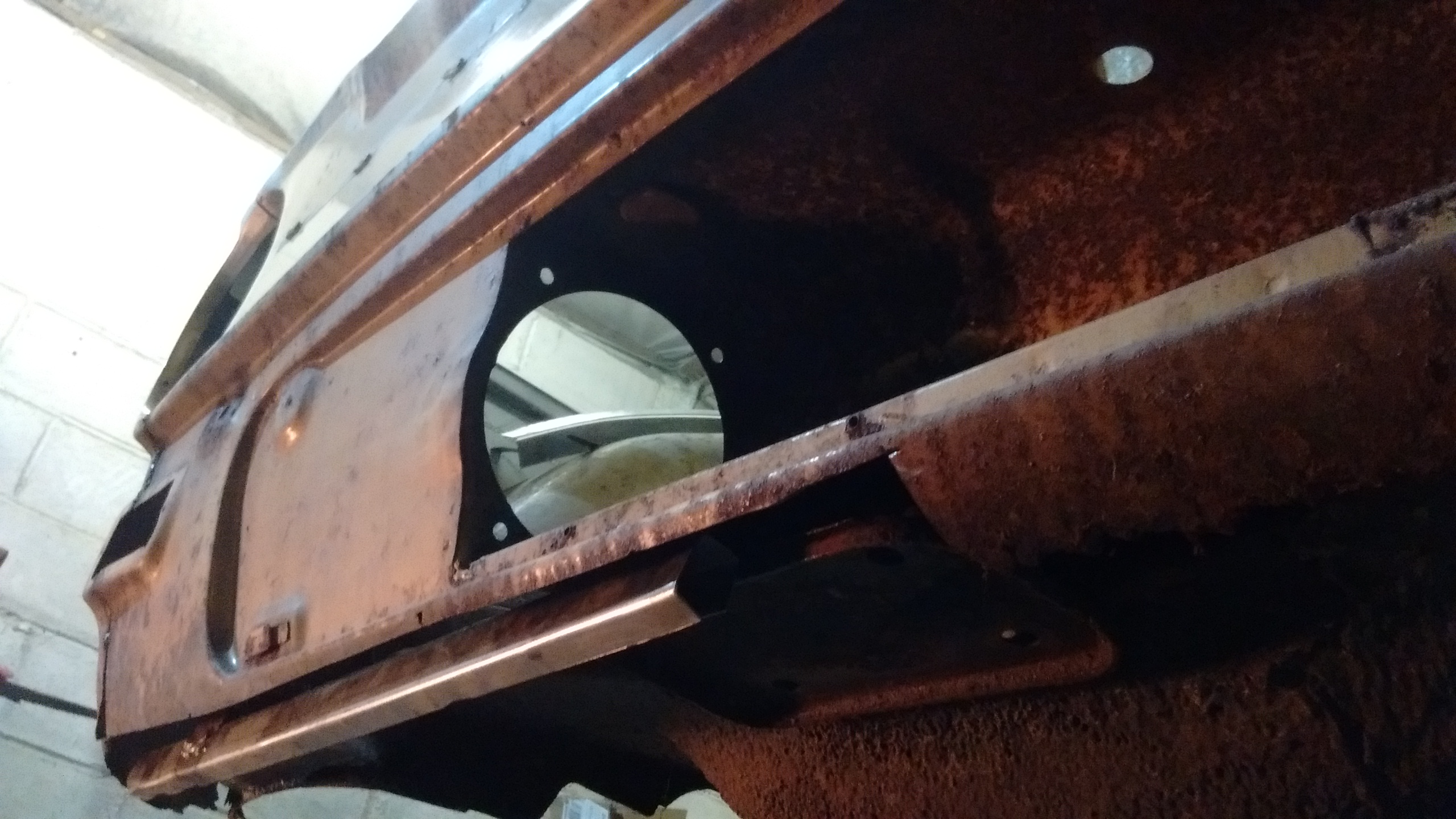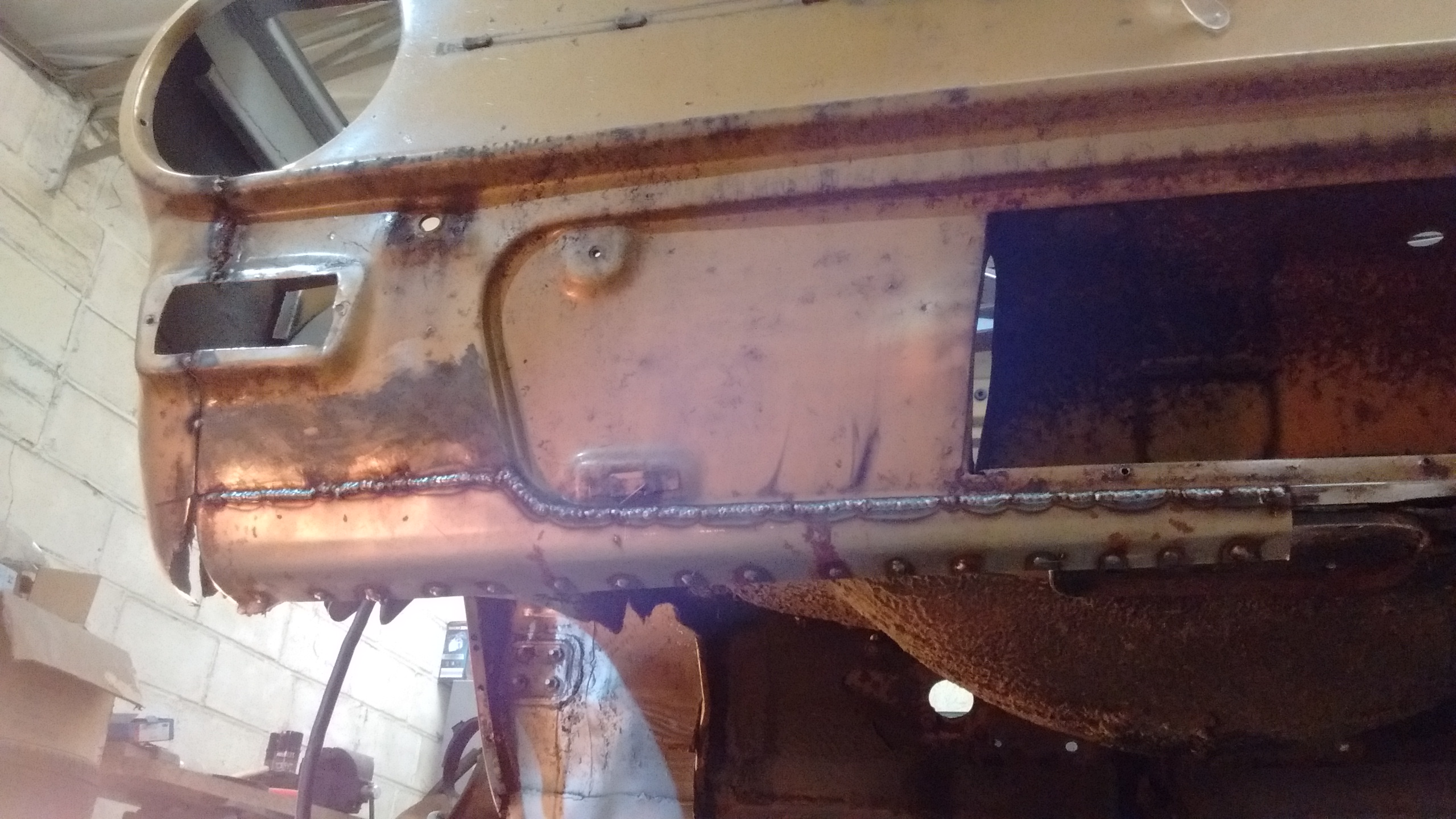 the underside of the passenger side then got chopped out so I could straighten out the big dent it had around the indicator opening, was pretty well stoved in but has come out pretty well
