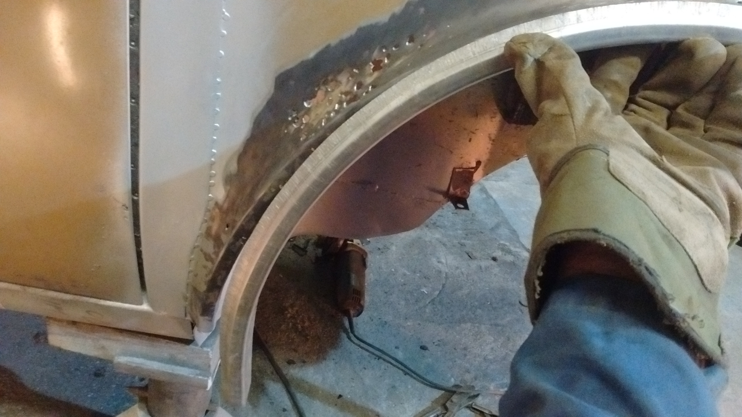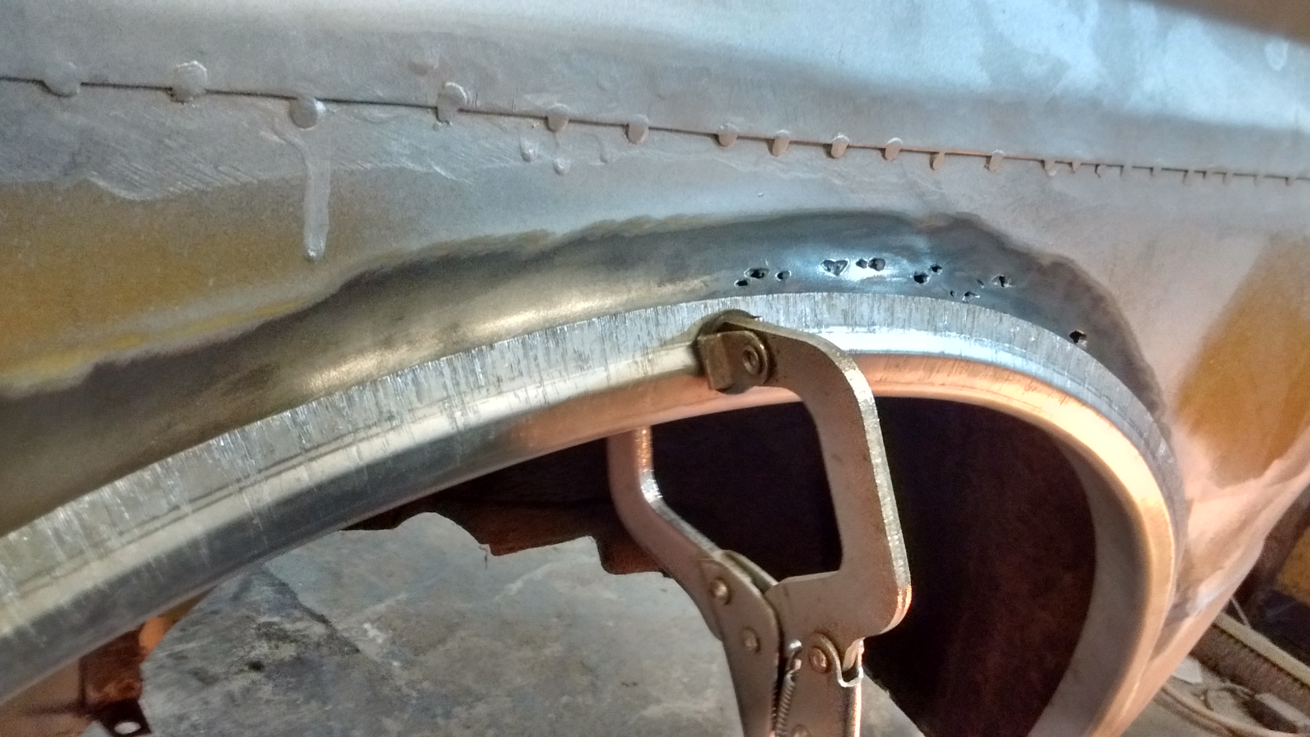 heat distortion from welding is a big issue crank, only way to minimise it is to take heaps of time. give the weld enough time to cool before doing the next tack. i'd love to do a full seam weld in one pass but it'd look like the north sea by the time you get to the end! something like that arch repair section can easily take 45min to weld on just because of doing a few tacks well away from each other then forcing yourself to walk away for a few mins, then making sure it's cooled before doing another series of small tacks.