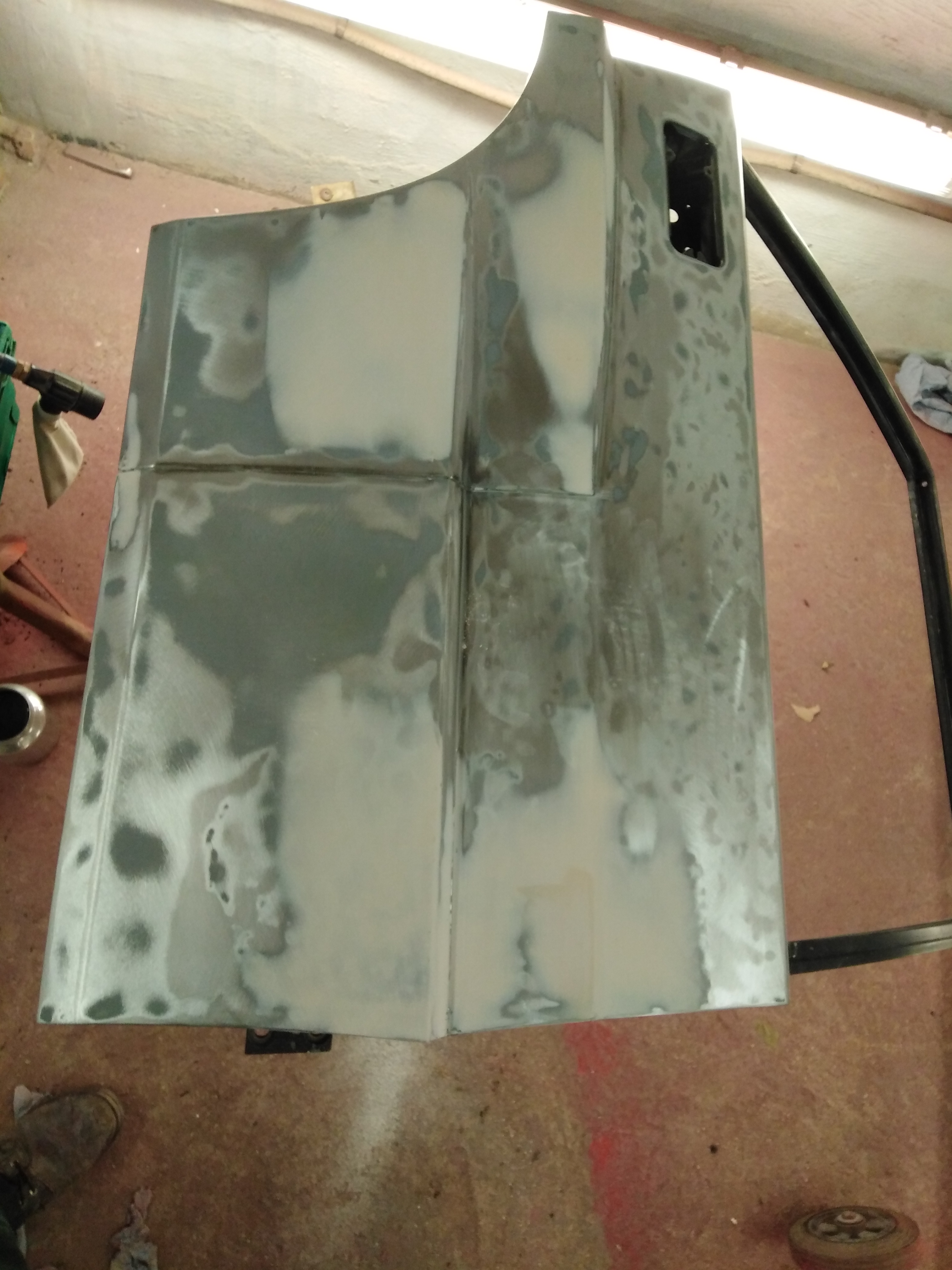 The rear doors were a good place to start, less likely to get damaged if they're bolted to the car than laid on trestles.