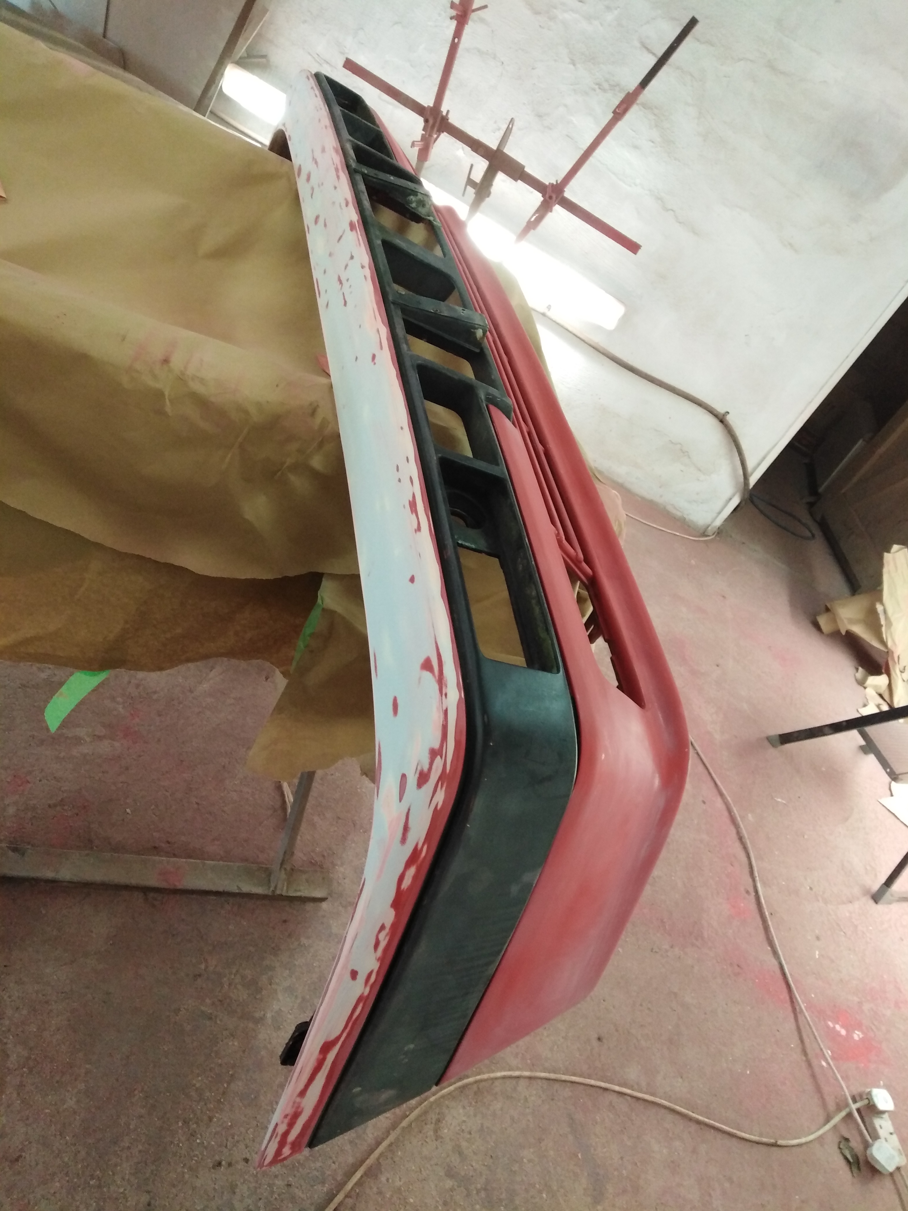 with everything stored out of the way the last remaining jobs are the plastics, the front bumper had been lacquered at some point on the top section which was peeling badly.
