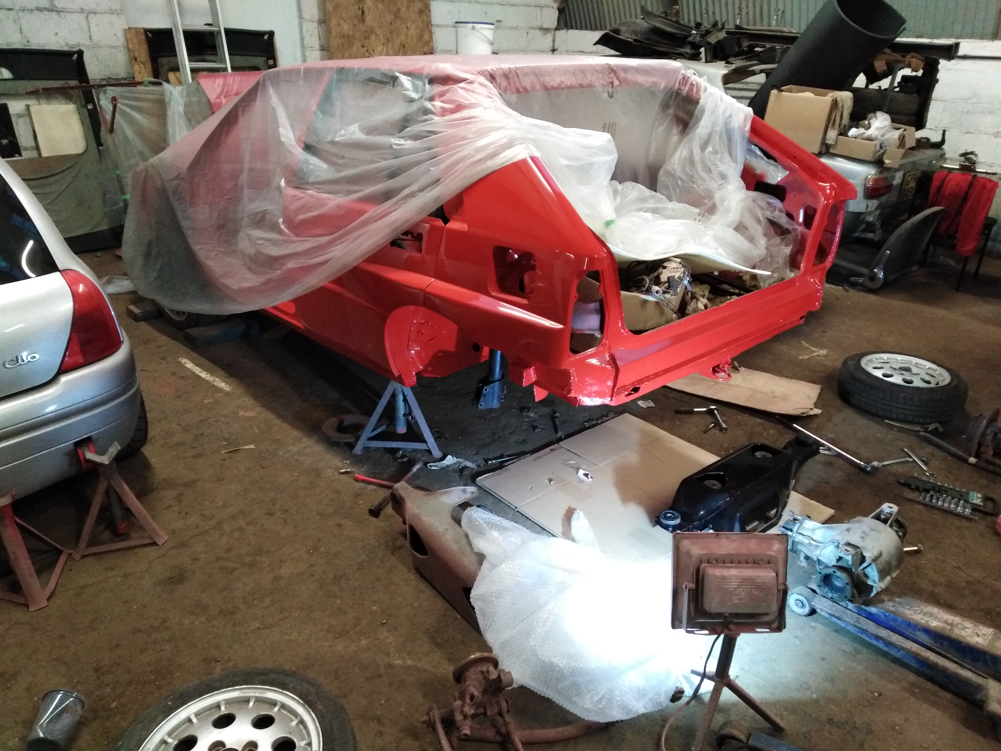 Looking superb with bits going back on and looking like a car again.