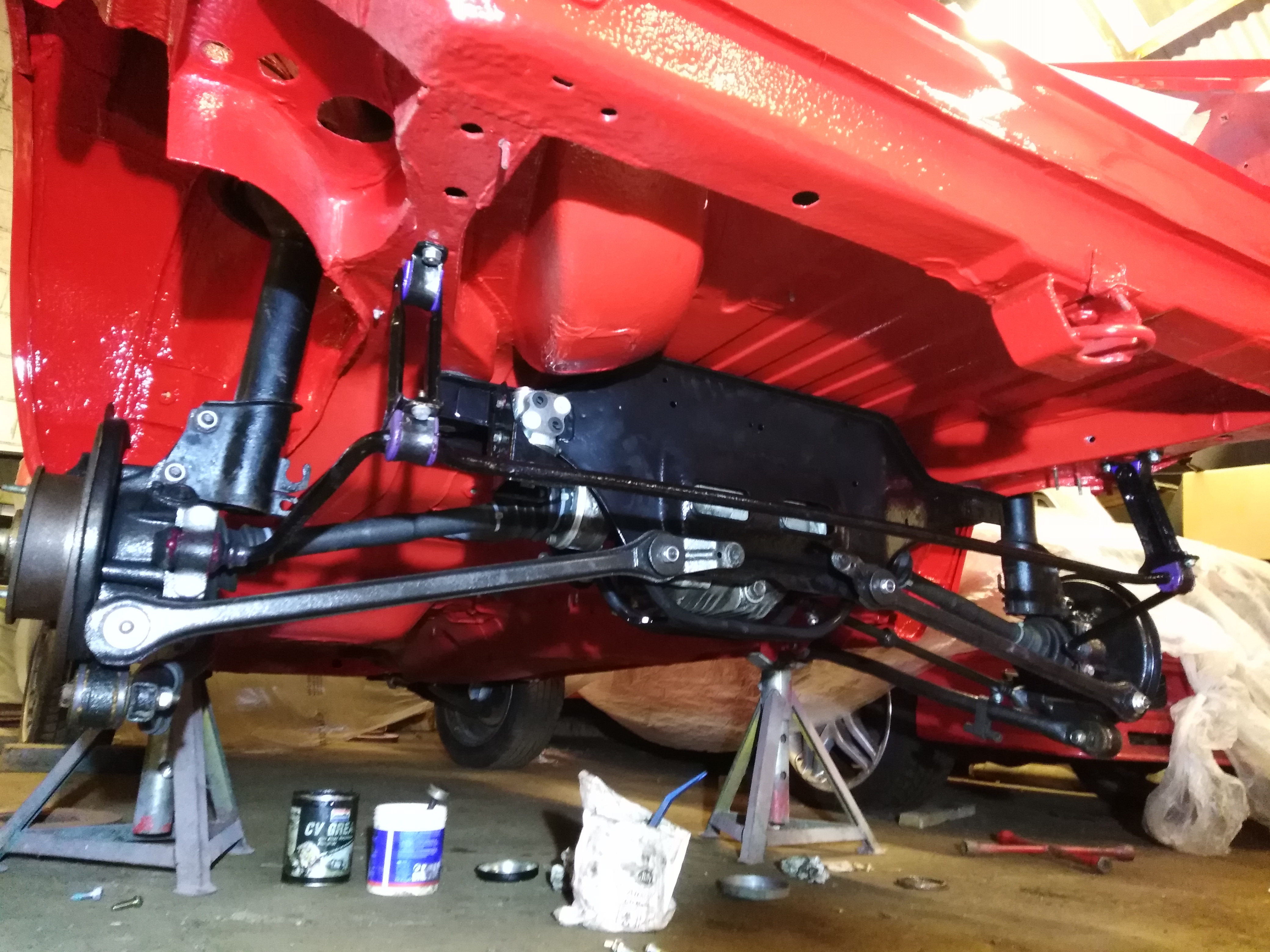 Hubs had already got new bearings and been painted up, arms had good bushes or new where needed.