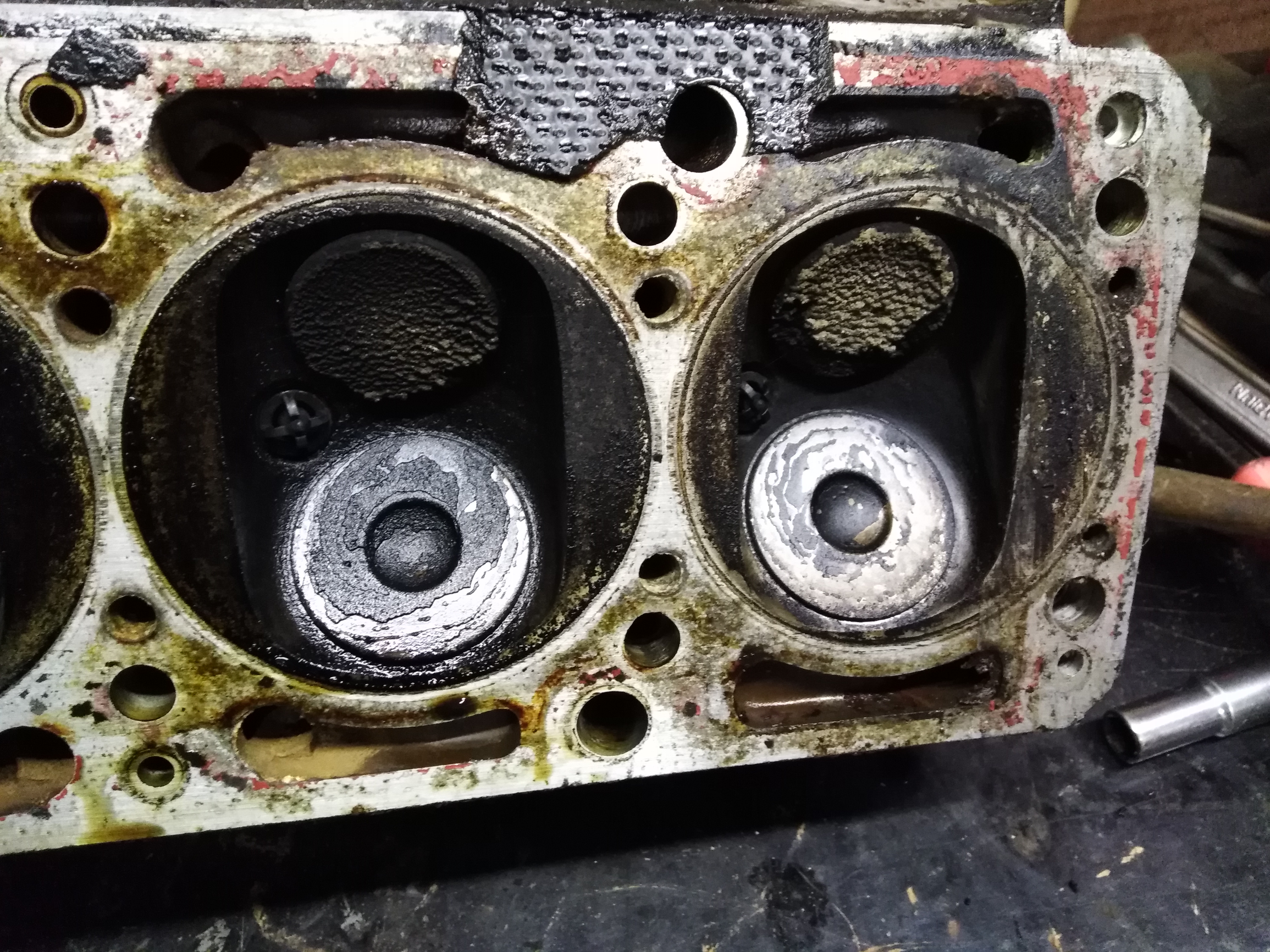 Got the head stripped down now, no real issues found. Valves look good so should clean up well, guides are in great order so shouldn't need changing. Valves are pretty big though, 36mm exhaust and 43mm inlets. Thought they may have been upgraded but on checking they are the standard size..