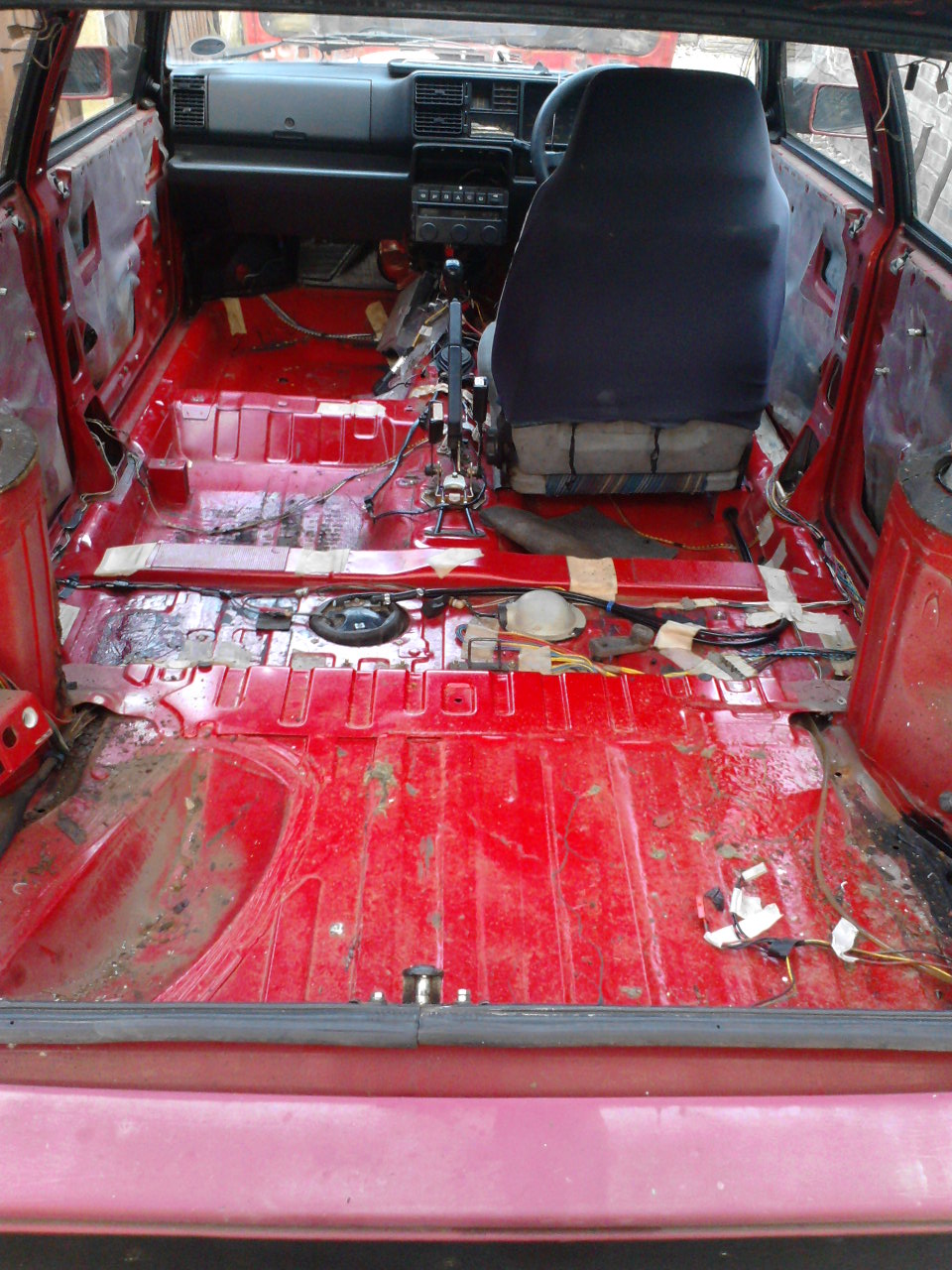 once we'd got all the seats out, carpet up and boot emptied we got poking with a big stick.