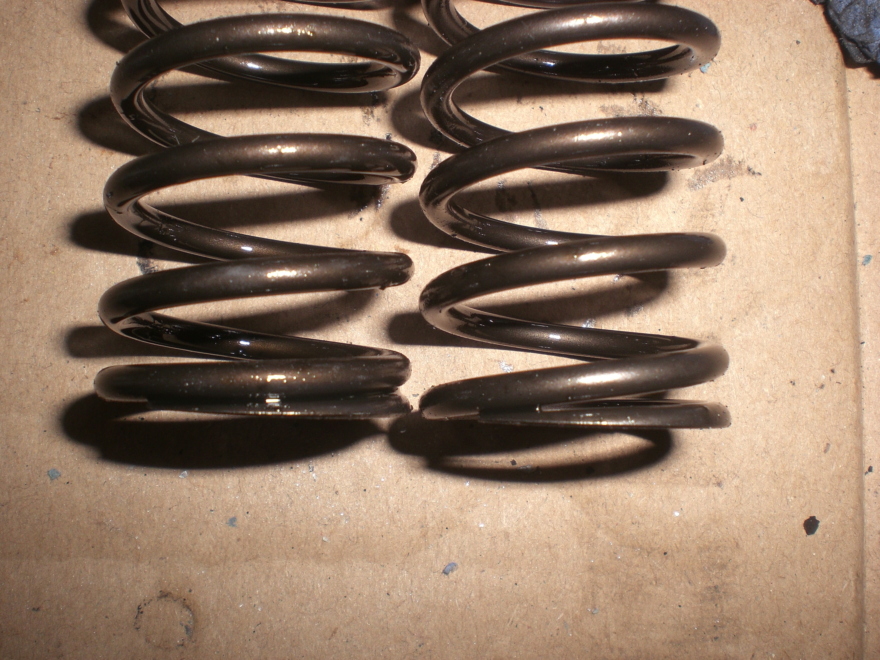 this pic is of a pair of the outer springs (harder to notice on the inners, but they have the same difference) where the one on the left has a tighter bound spring, hence mass, at the bottom of the pic.