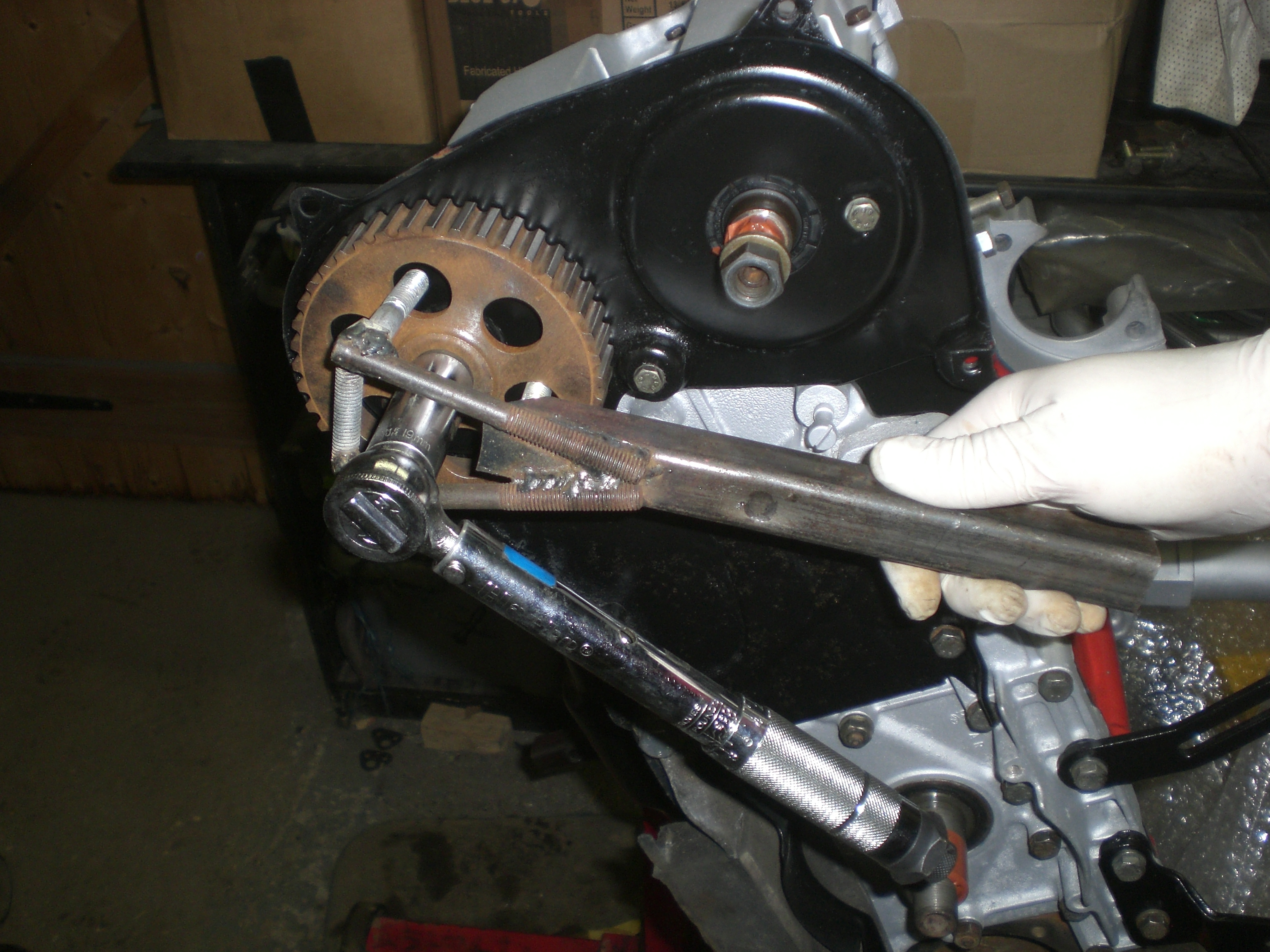 ed asked me about tightening the cam pulleys, not easy as the cams don't have any flats on them to get a big spanner on it.