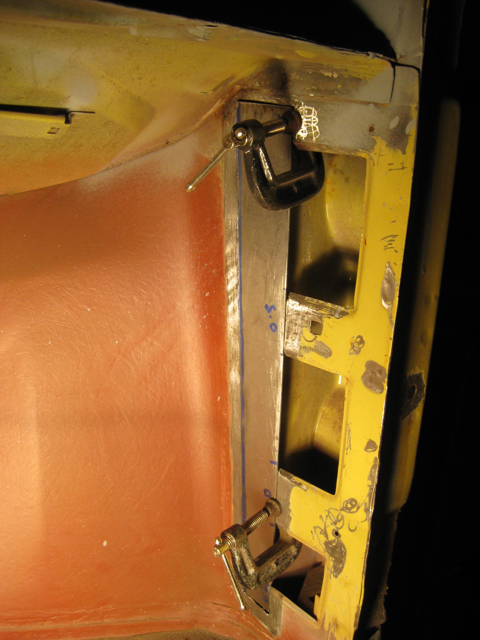The next photo shows the inner flange in place and some spacers in place to maintain a door gap....