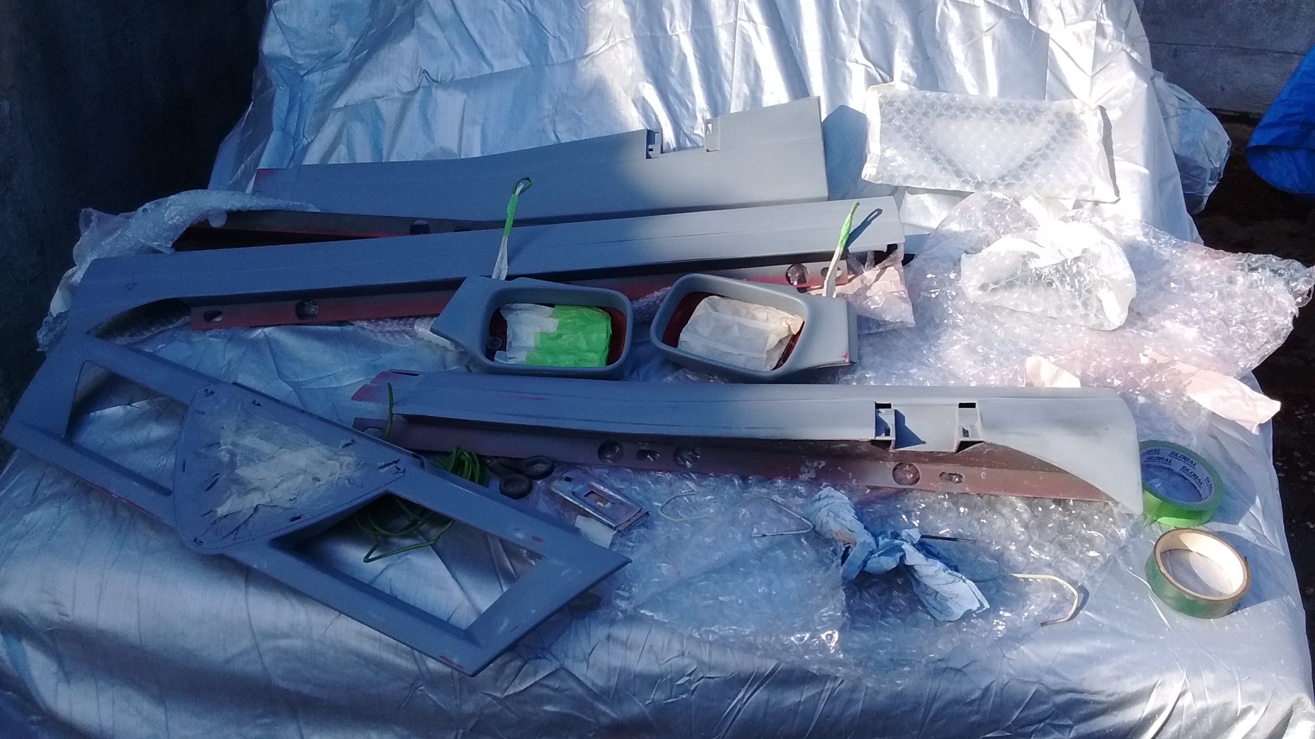 the gutter trims I'd not had space to paint with the shell so they handily got perched on a door stand