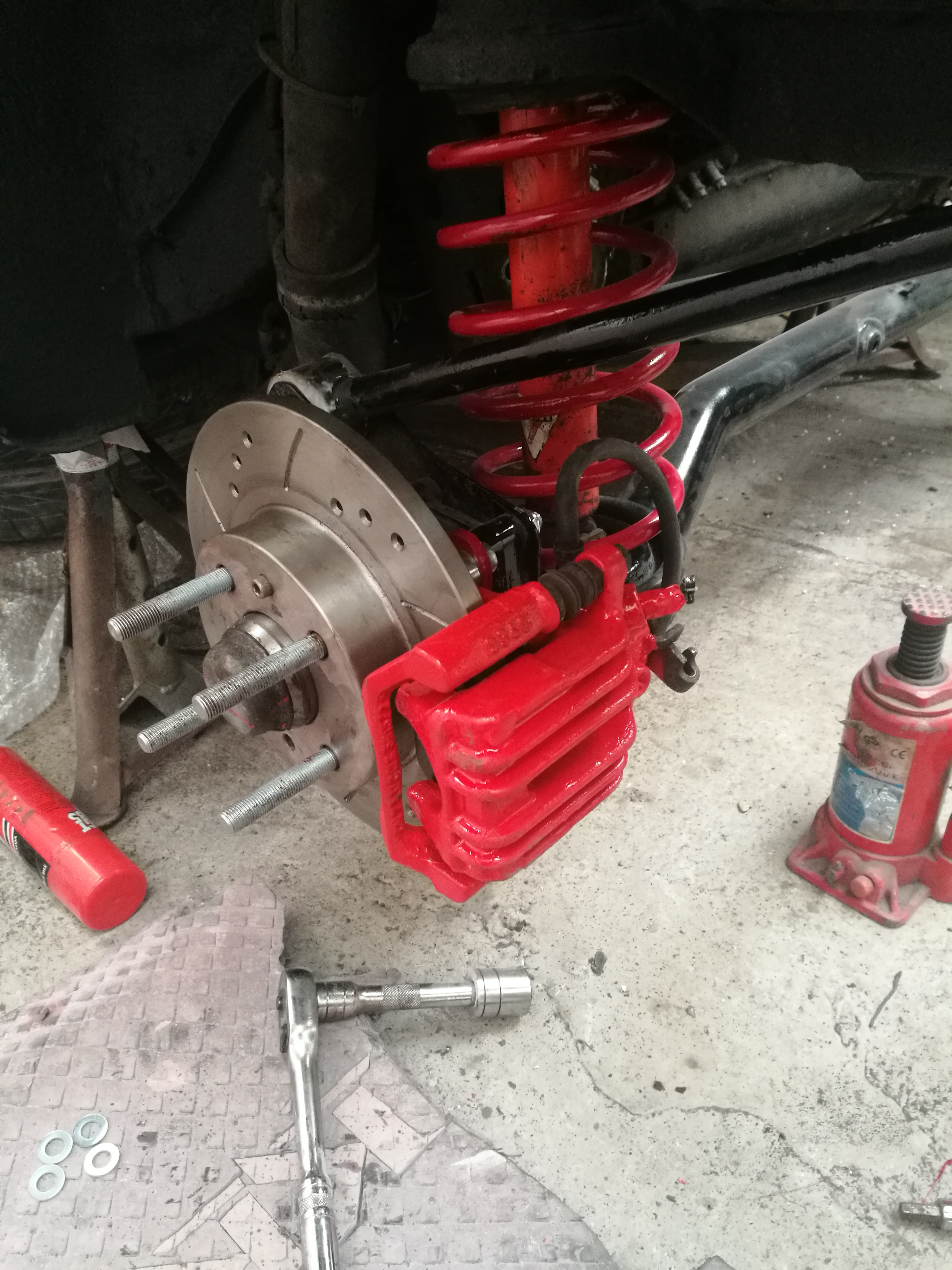Been doing some bits to the 33 . The rear brake upgrade is done bar hand brake cables . Plus the liquid rubber polyurethane is done too Now on to fitting the Carlos Fandango wheels