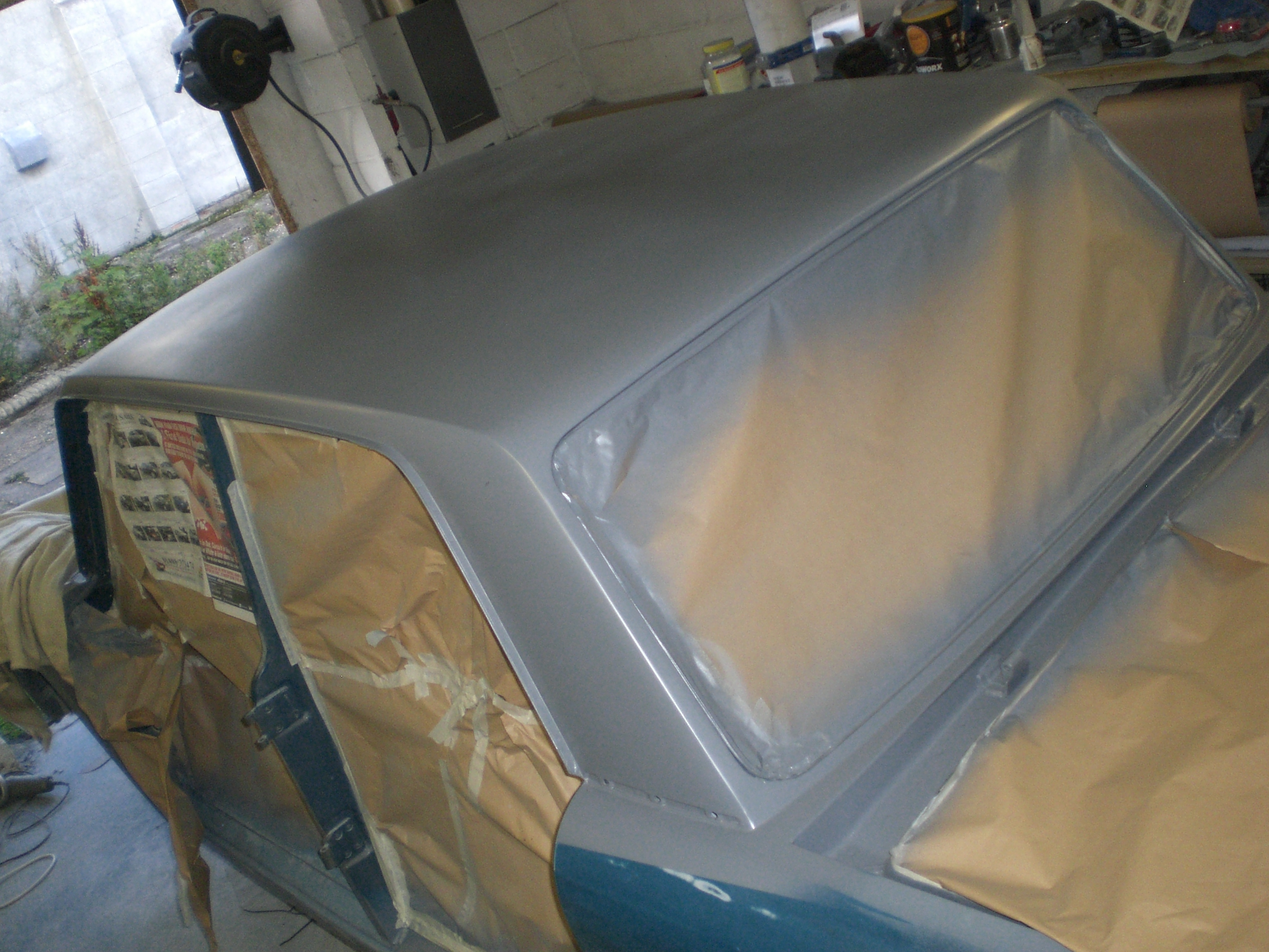once the gas heater had been going a while it was toasty in there so with the car masked up save for the wheel arches and engine bay it was finally time to put some colour on.