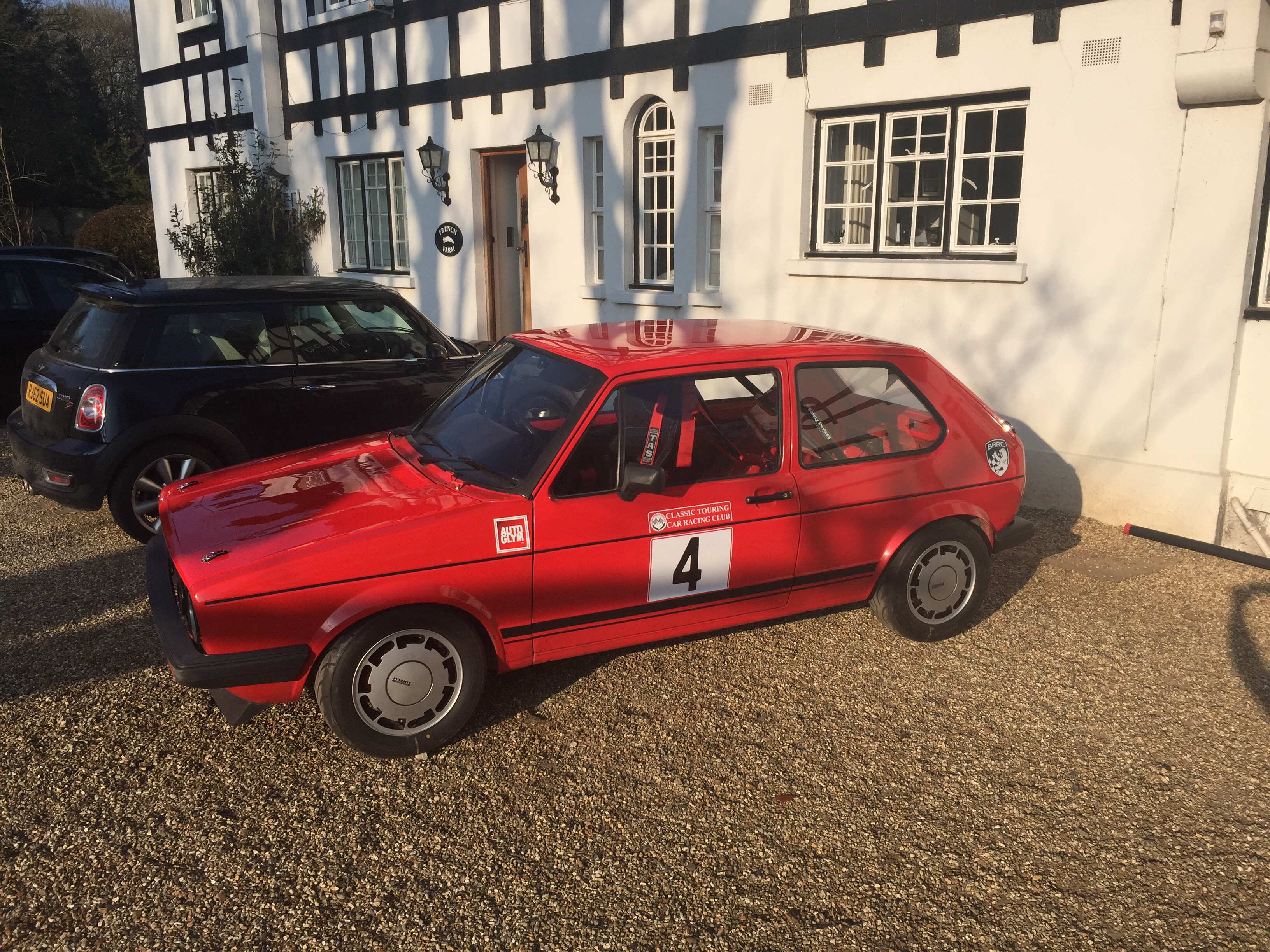 Next up is the Golf Gti Mk1 driven by Chris Dumont. The car has been lightened with carbon Kevlar bonnet and rear hatch plus a Perspex rear window. Chris is much lighter too.