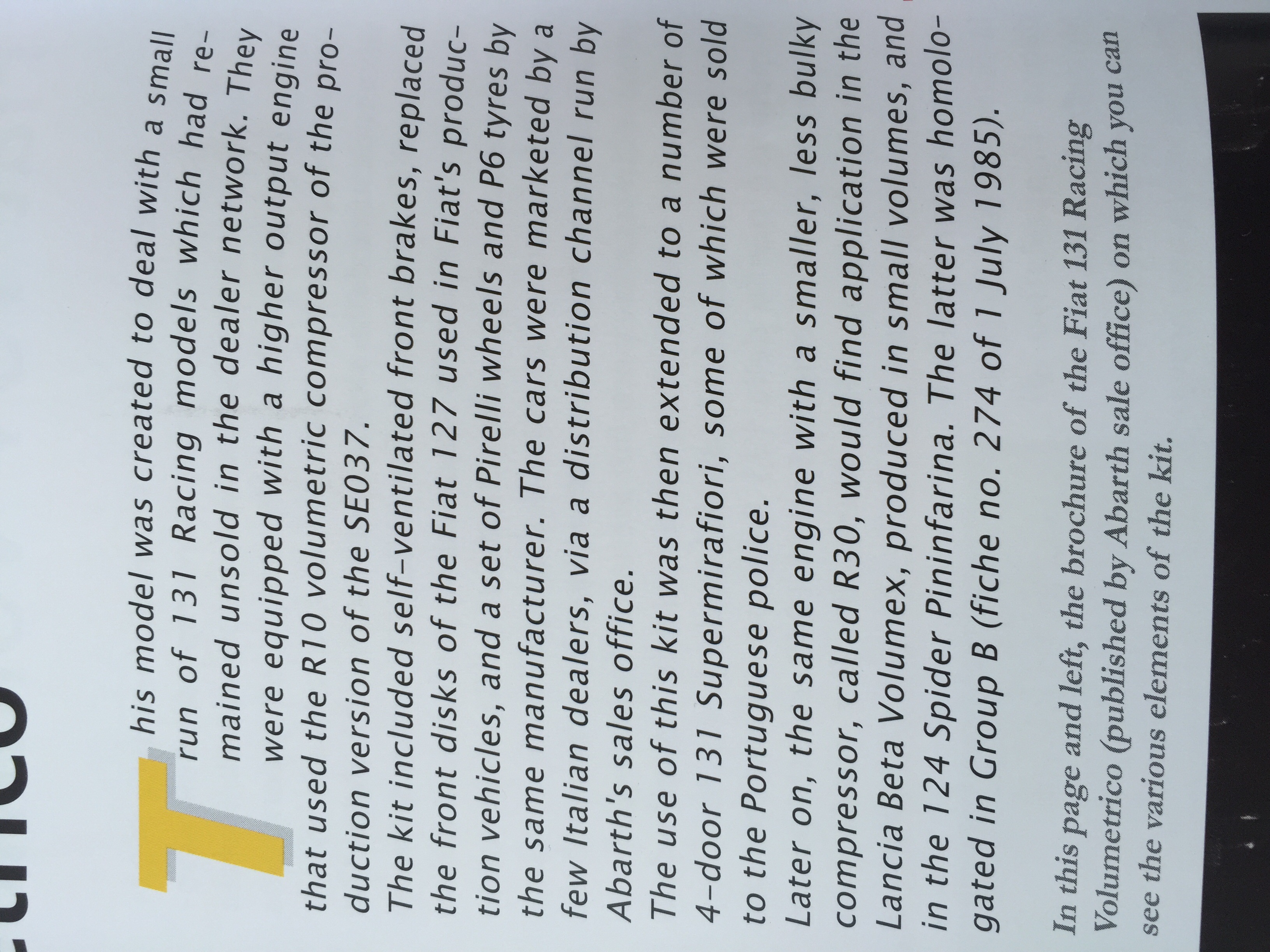 There was a 131 Rally car there with a volumex blower on it and the standard carb setup producing 200bhp: