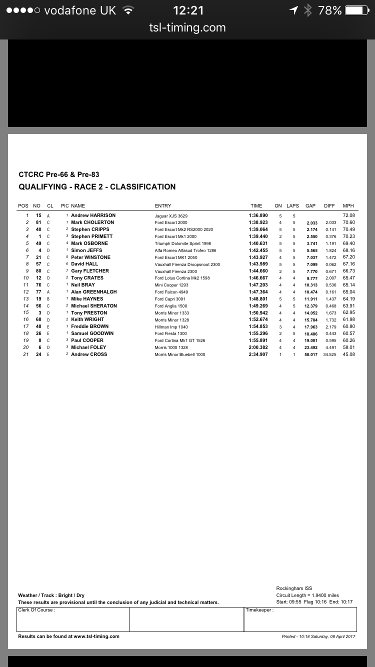 The car ran well so I should be cured for the race. We will see. Very happy with my grid position. I need to stay with the Dolomite!