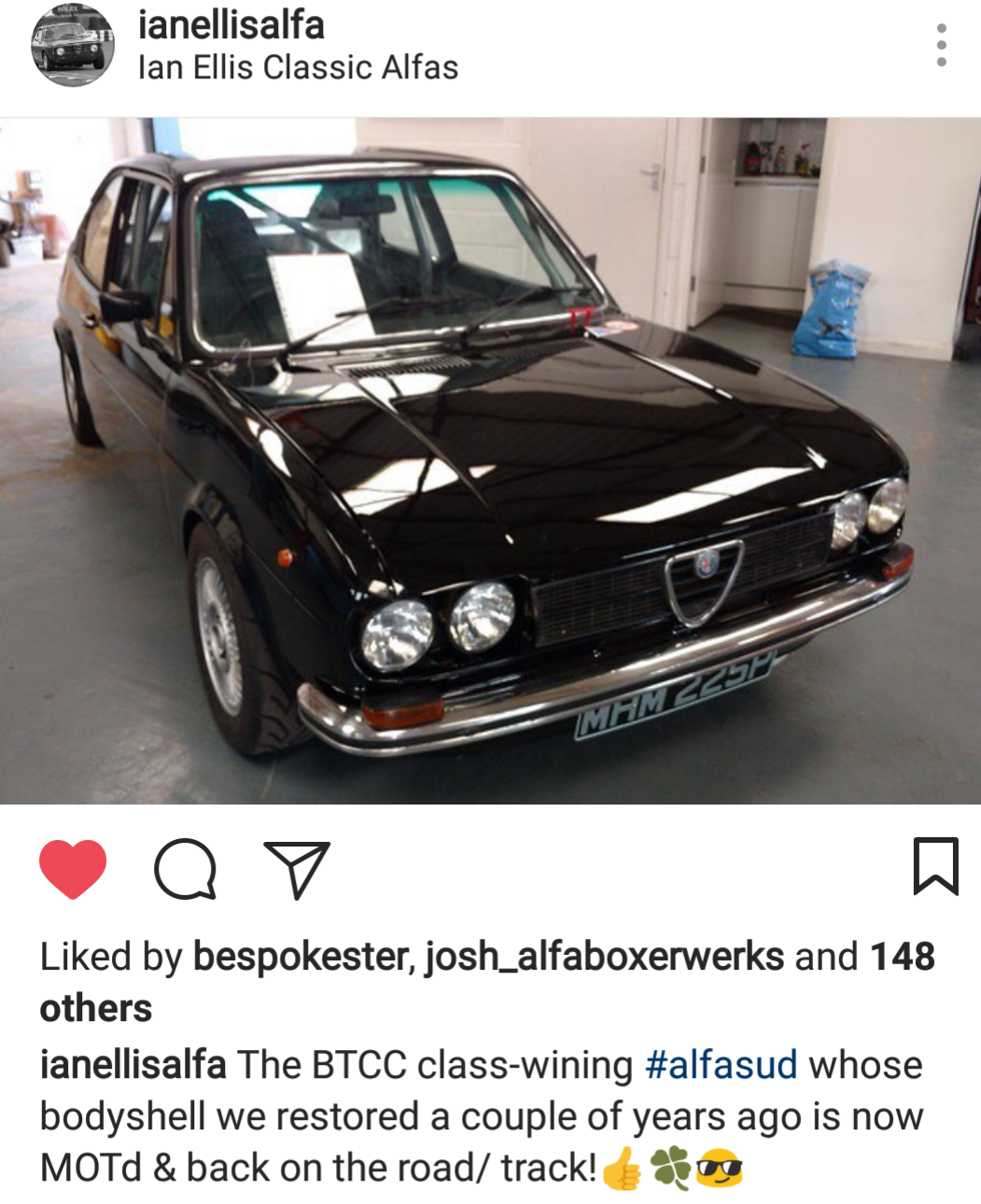 A brave restoration, it was a basket case, but with its race history worth it. I think Chris Whelan also owns an ex Italian touring car 75 turbo also so very envious.