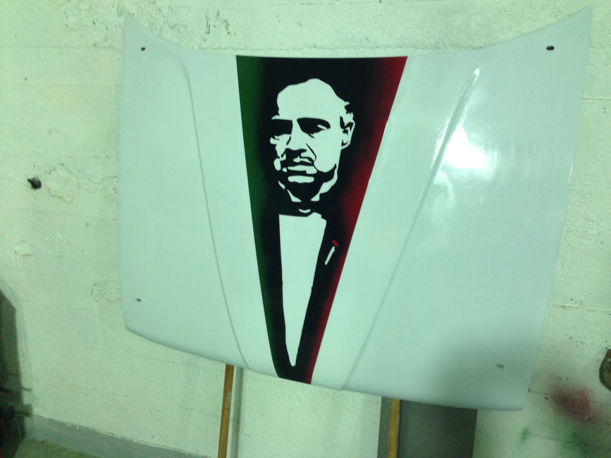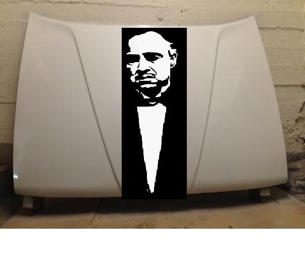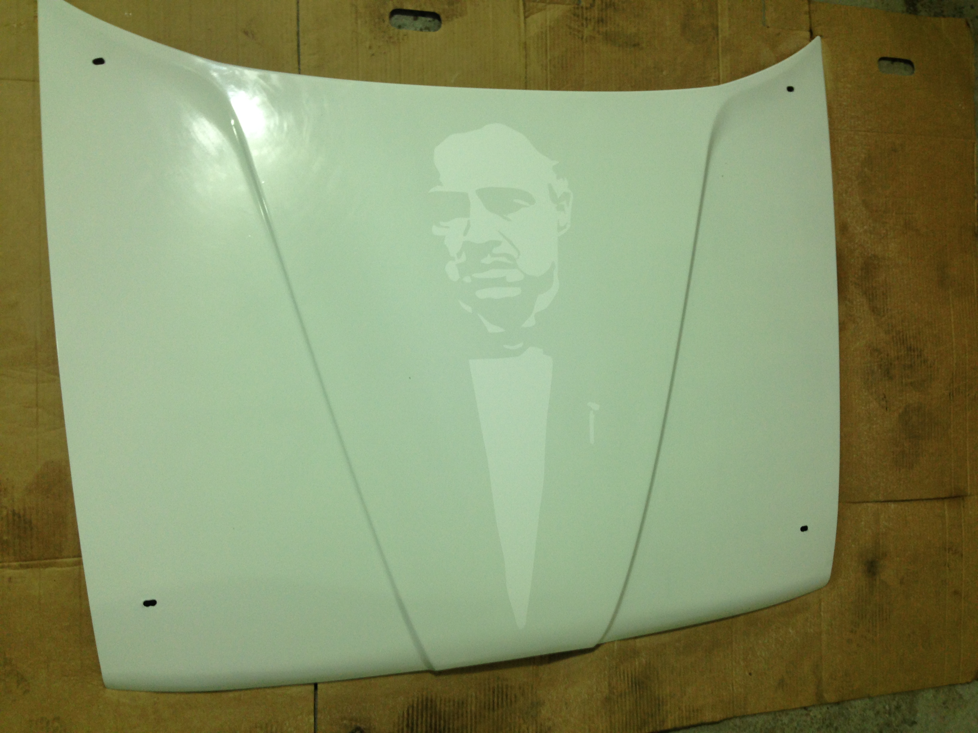 Not sure if the stripe should be straigth like the picture, or follow the "V" on the hood. Will try to mask the white (bougt decal) and paint with black over and remove the decal. Never done this before, so this is a pure test :-)