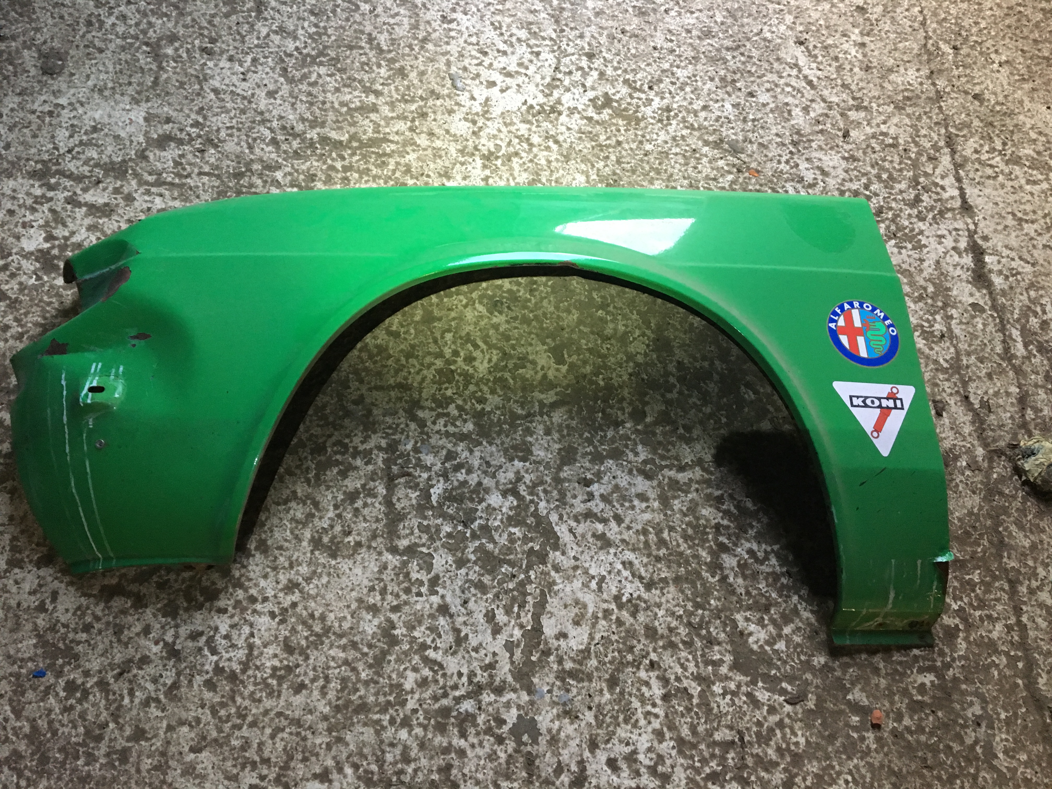From a racing car. Damaged at the front, but solid with areas that could be used for repairs of rustier wings, or a really good panel beater could just about straighten it.